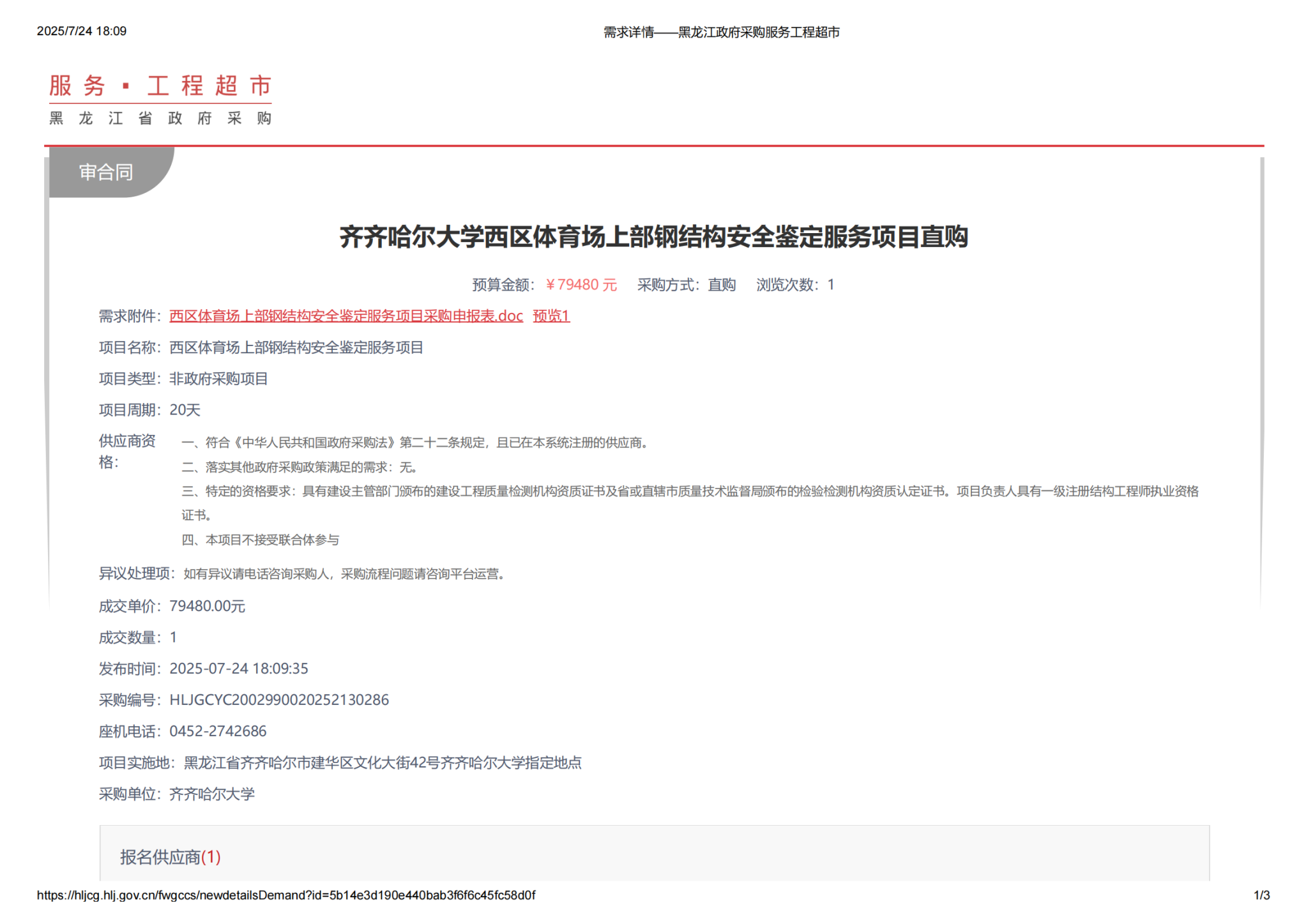 上一条:齐齐哈尔大学2025年水暖管网及浴池维修项目中标(成交)结果公告(转自黑龙江省政府采购网)