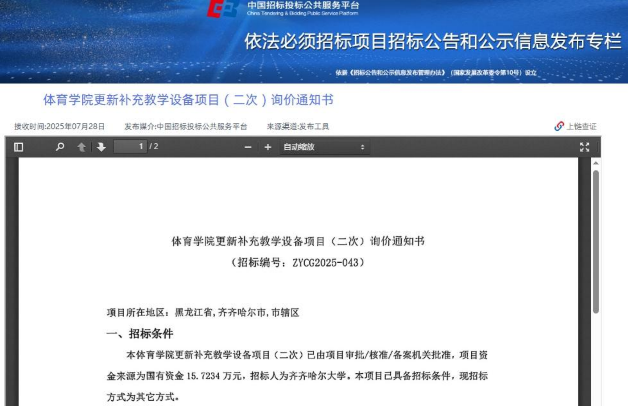 下一条:齐齐哈尔大学一批维修加固项目拆除物捆绑转让(国资监测编号GR2025HL2003367)(转自黑龙江联合产权交易所)