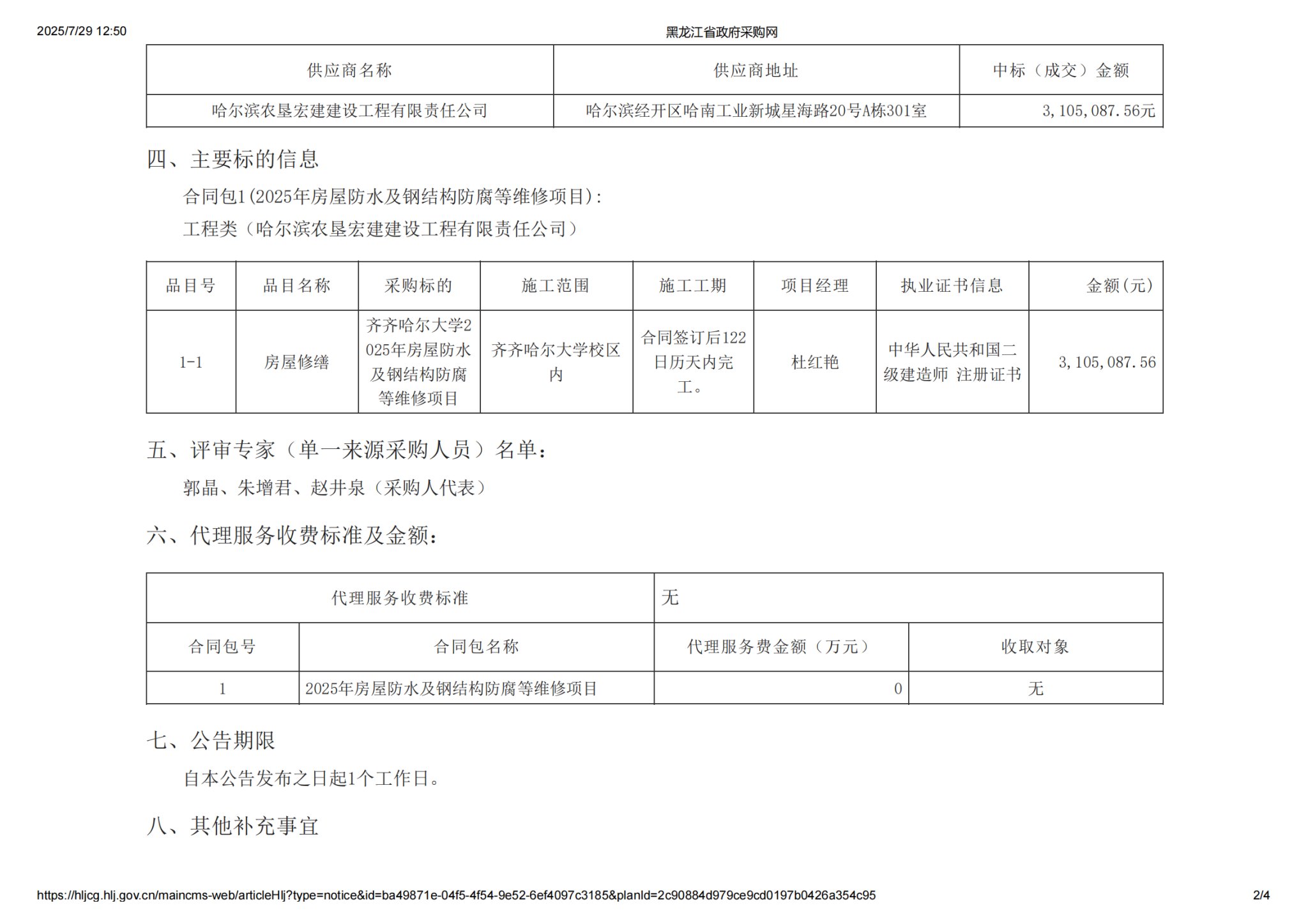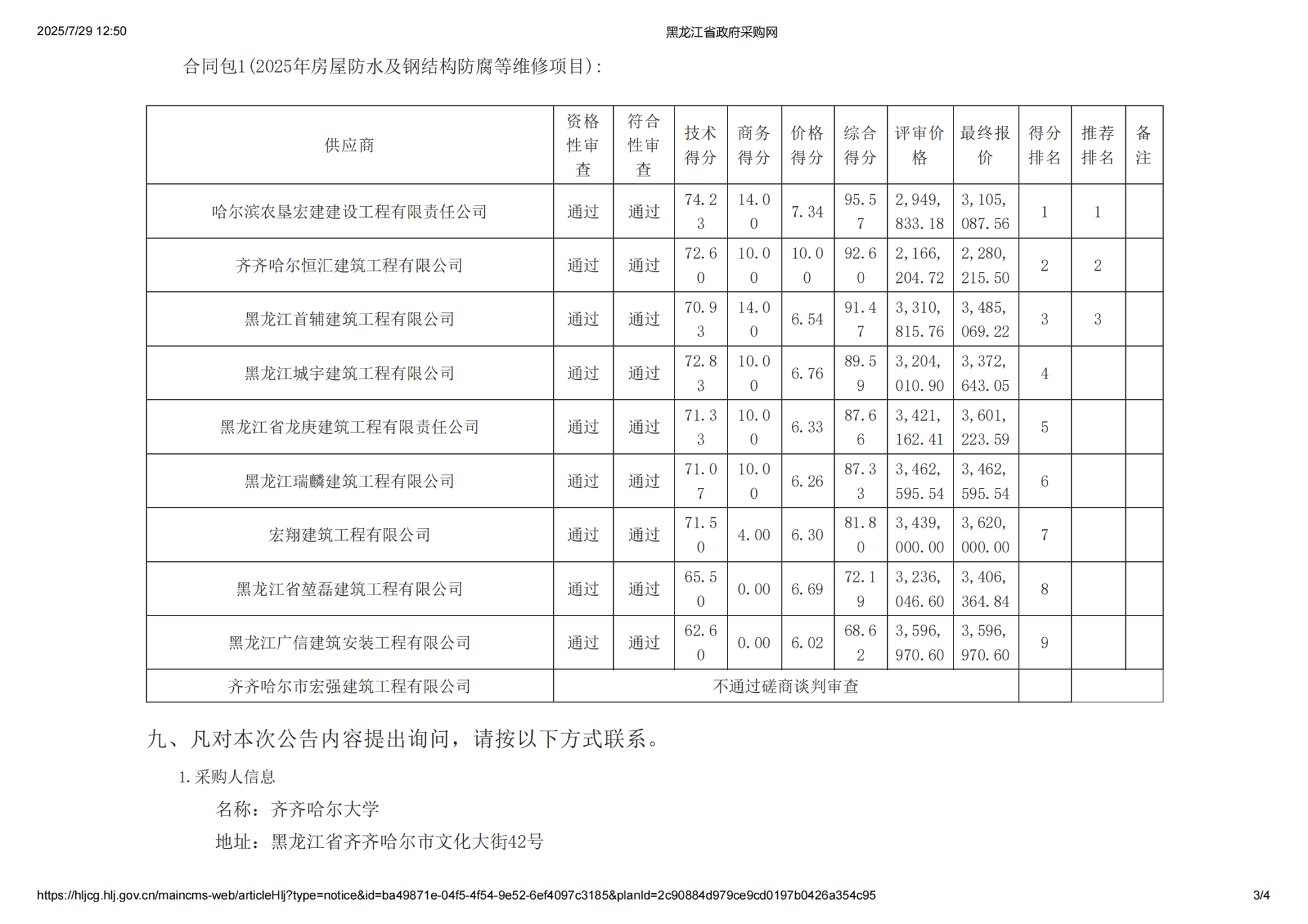 下一条:齐齐哈尔大学2025年房屋防水及钢结构防腐等维修项目中标(成交)结果公告(转自黑龙江省政府采购网)