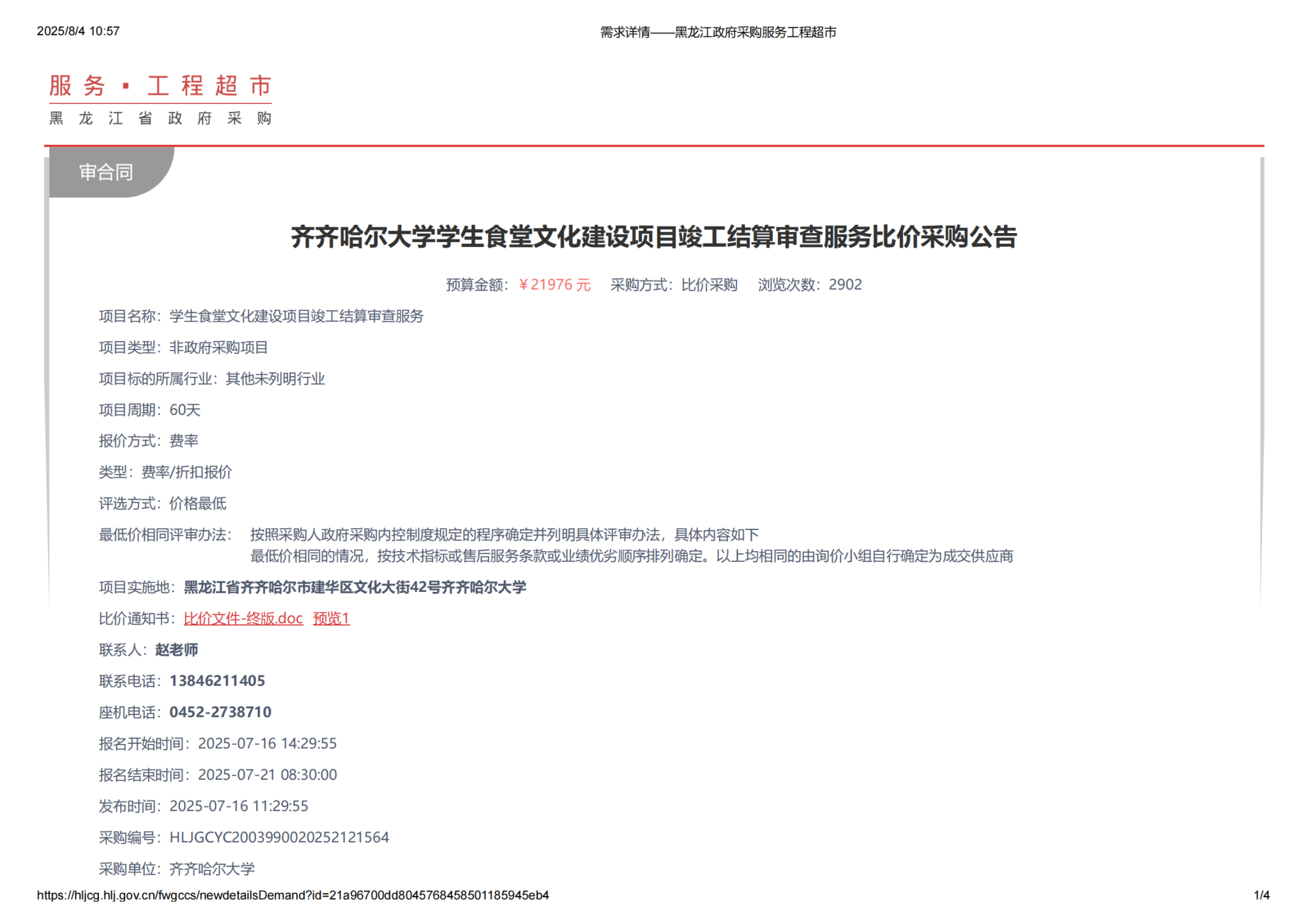 下一条:齐齐哈尔大学化学与化学工程学院更新补充教学设备项目(二次)竞争性谈判公告(转自黑龙江省政府采购网)