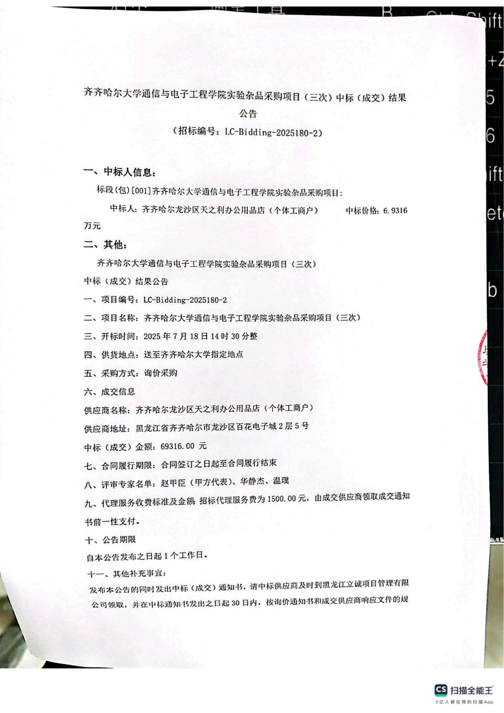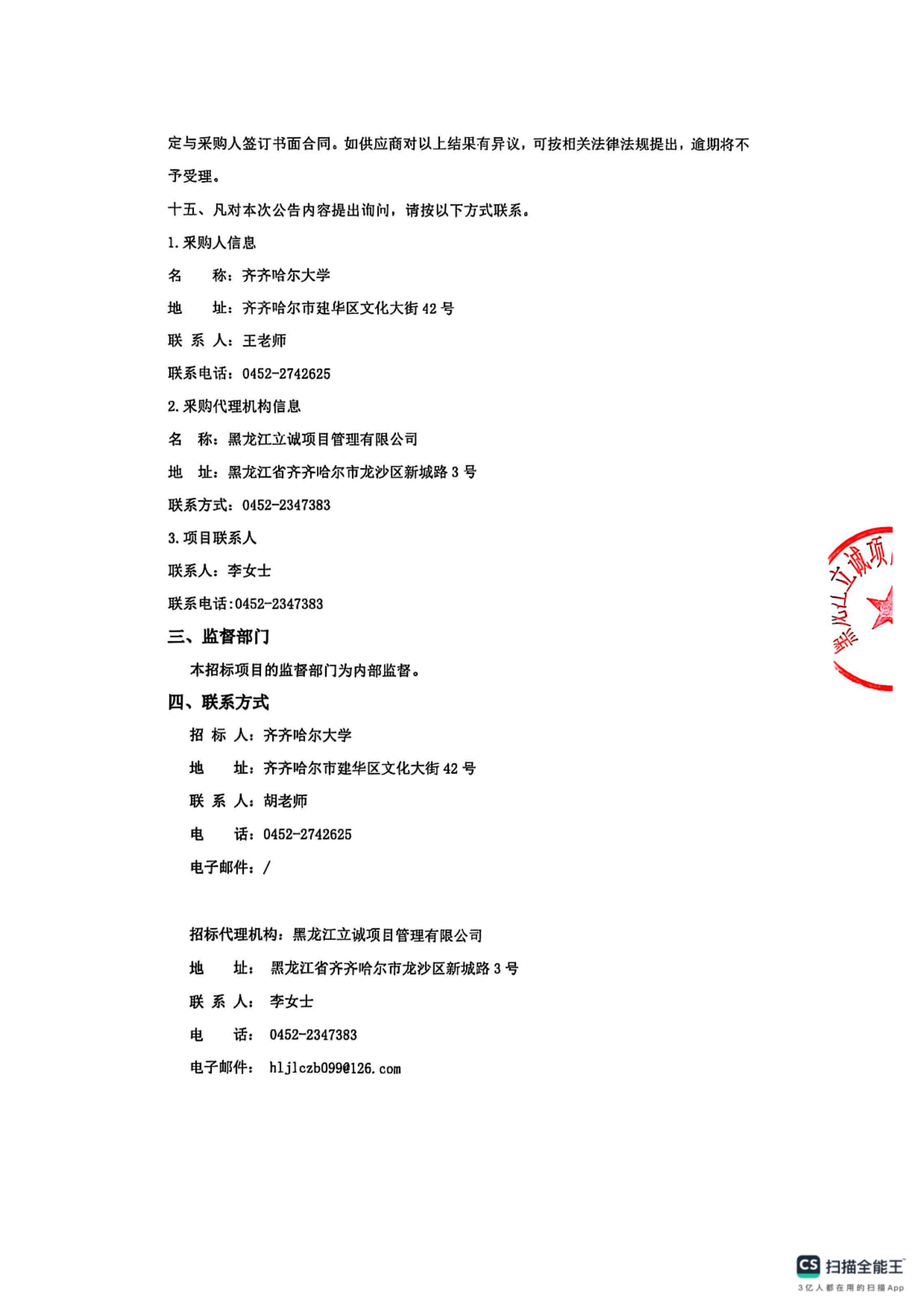 上一条:齐齐哈尔大学通信与电子工程学院补充更新教学设备项目(二次)竞争性谈判公告(转自黑龙江省政府采购网)