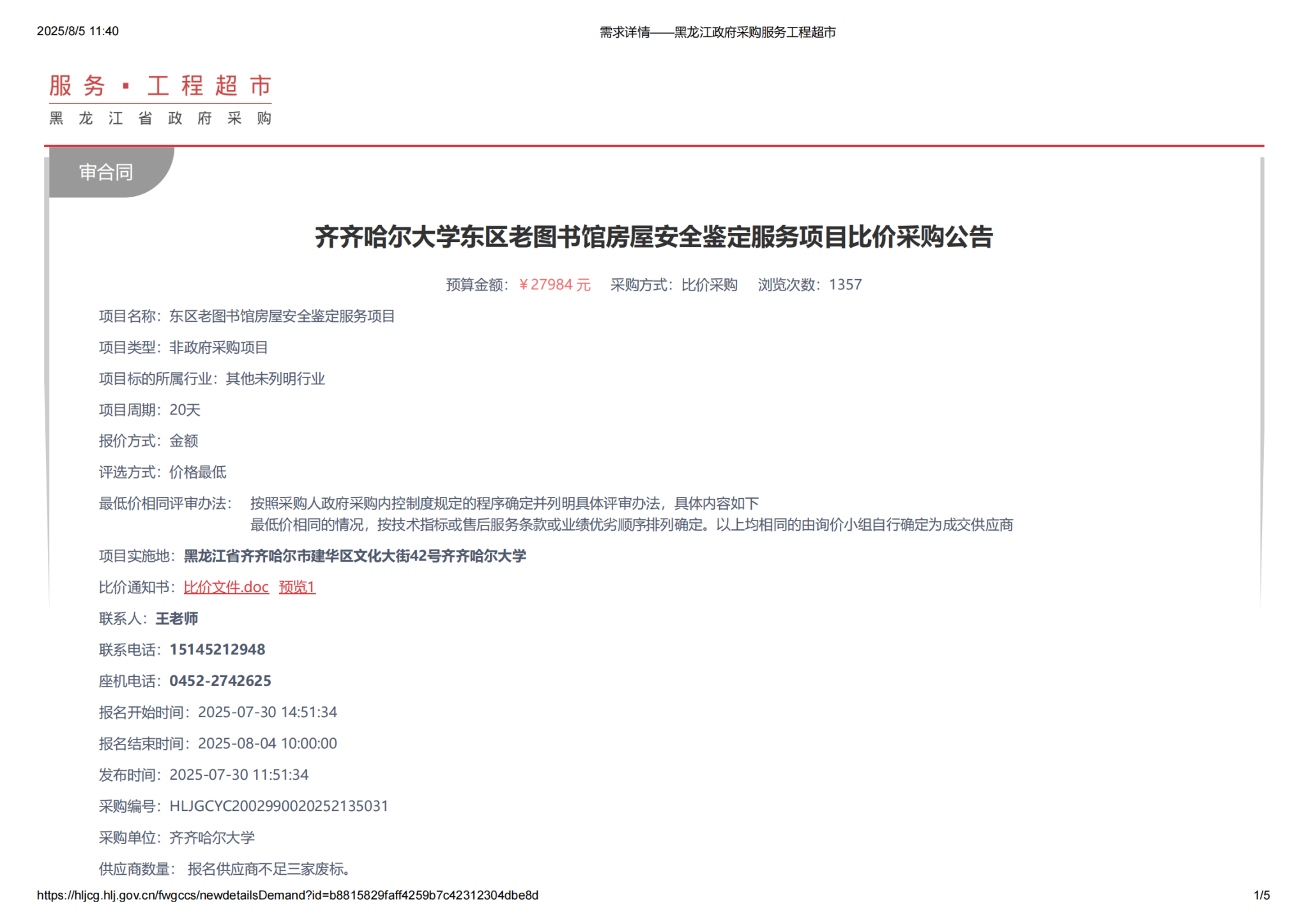 上一条:齐齐哈尔大学齐齐哈尔大学 2025 报到指南印刷服务直购(转自黑龙江省政府采购网)
