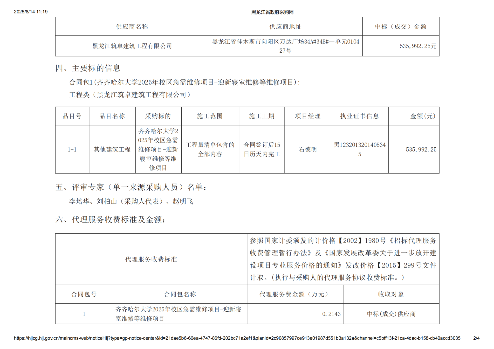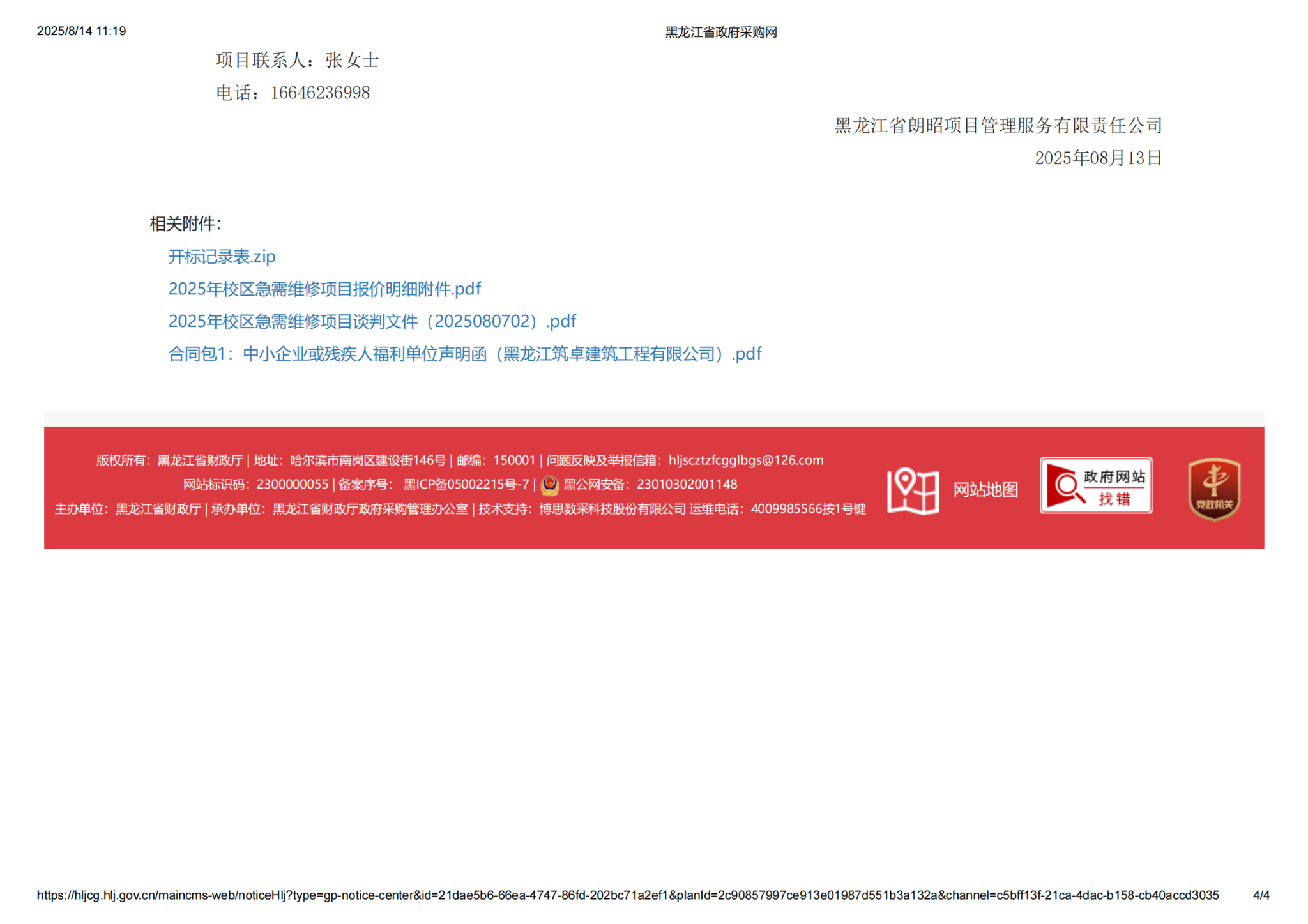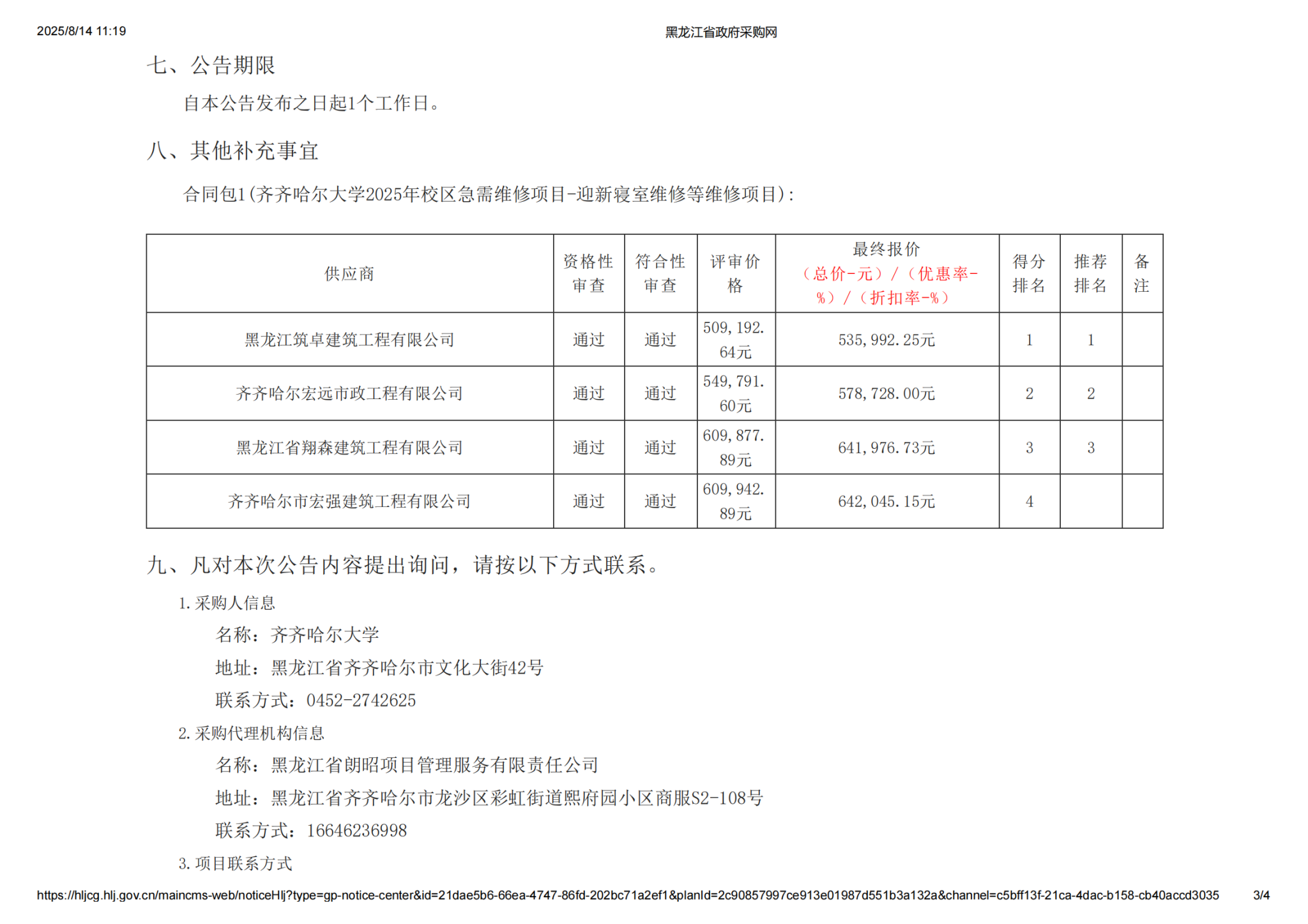 上一条:齐齐哈尔大学2025年校区急需维修项目中标(成交)结果公告-齐齐哈尔宏远市政工程有限公司(转自黑龙江省政府采购网)