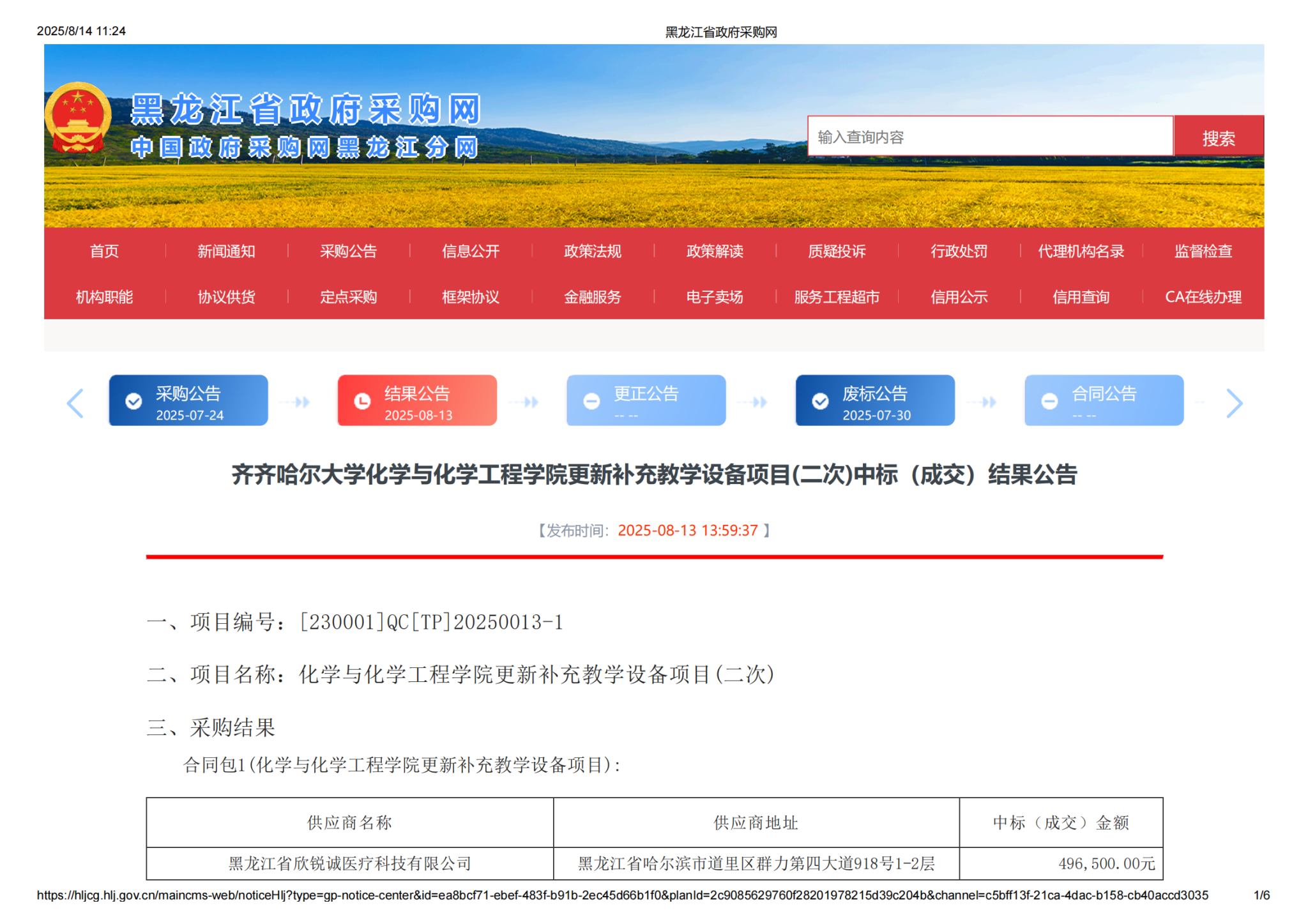下一条:齐齐哈尔大学精密控温夹套玻璃过滤结晶工作站设备采购项目竞争性谈判公告(转自黑龙江省政府采购网)