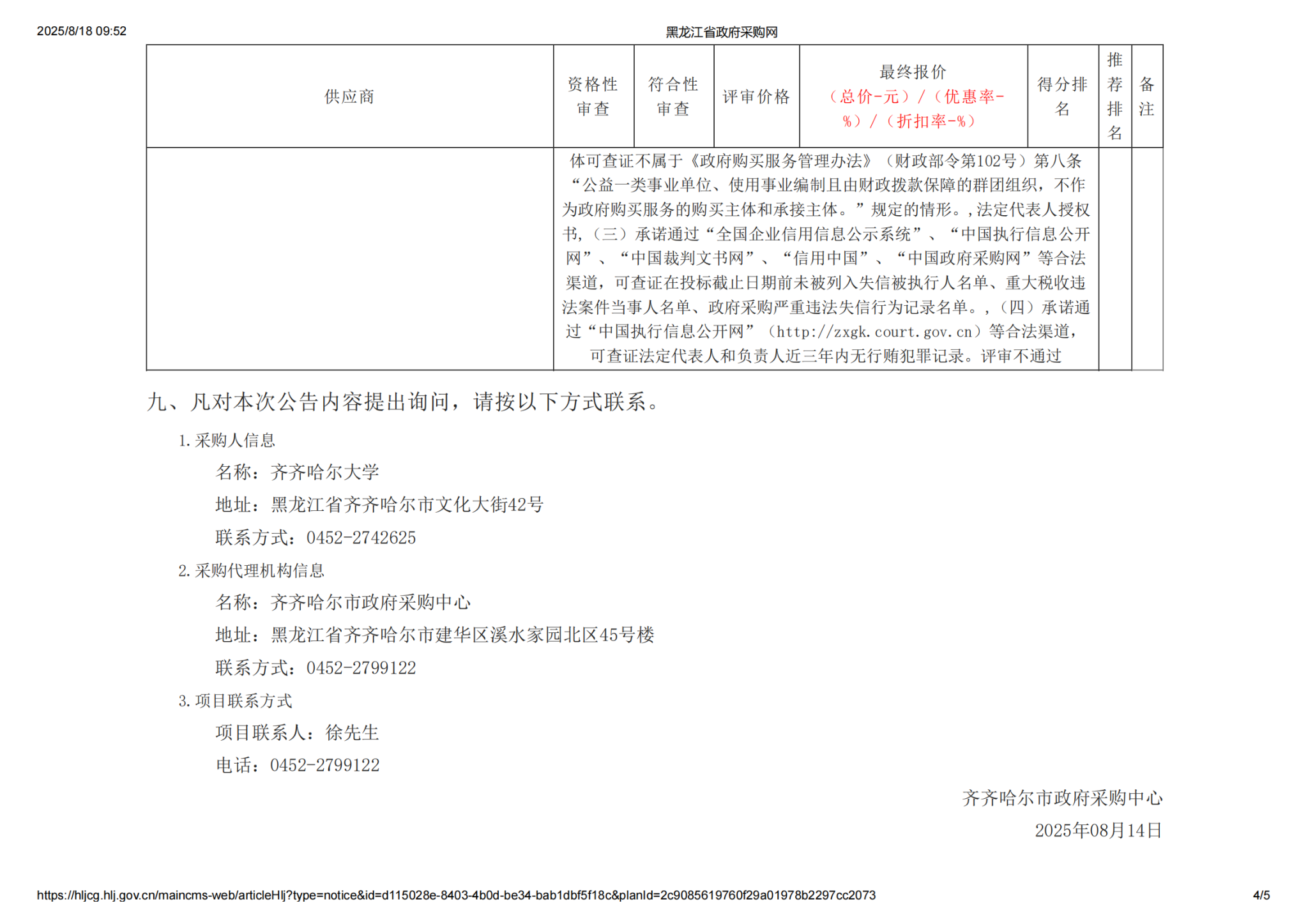 下一条:齐齐哈尔大学2025年校区急需维修项目-室内零星等维修项目(第3次)比价采购公告(转自黑龙江省政府采购网)