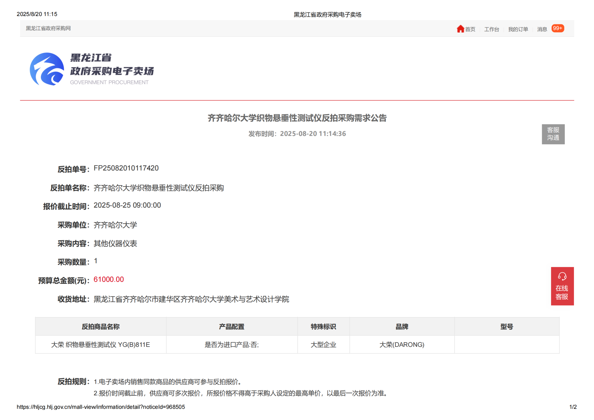 上一条:齐齐哈尔大学2025年校区急需维修项目-室内零星等维修项目(第3次)比价采购结果公告(转自黑龙江省政府采购网)