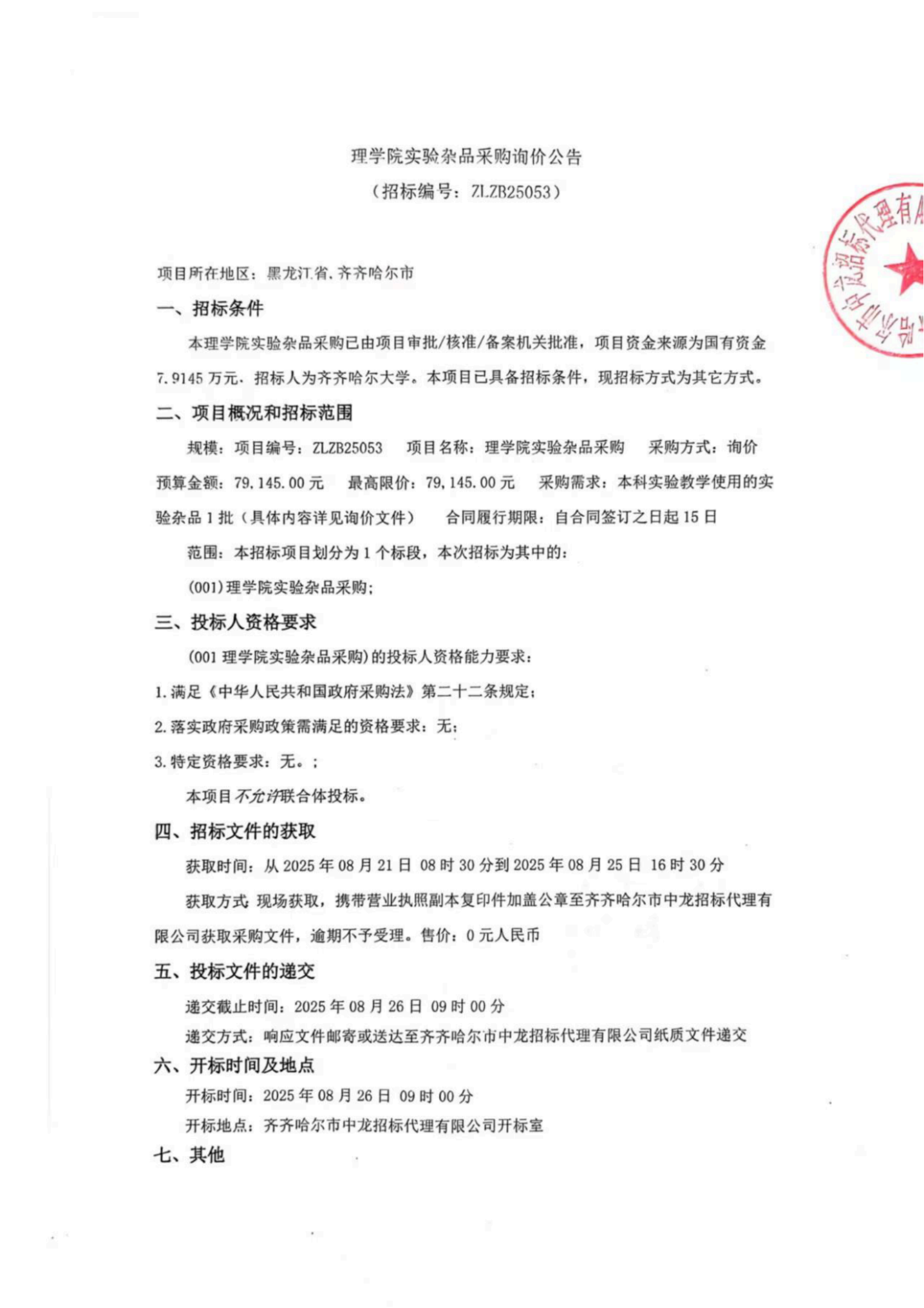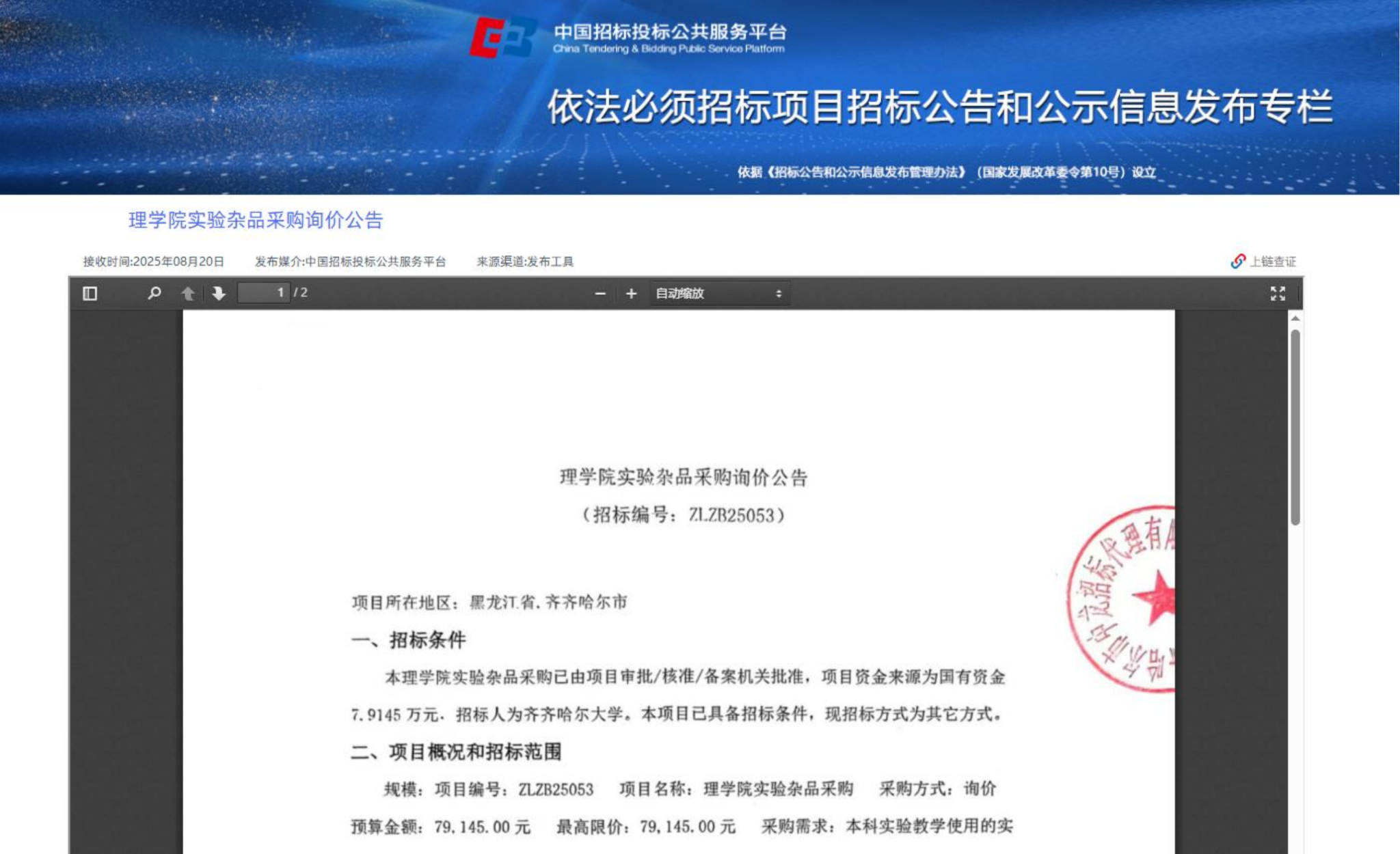 下一条:齐齐哈尔大学2025年校区急需维修项目-室内零星等维修项目(第3次)比价采购结果公告(转自黑龙江省政府采购网)
