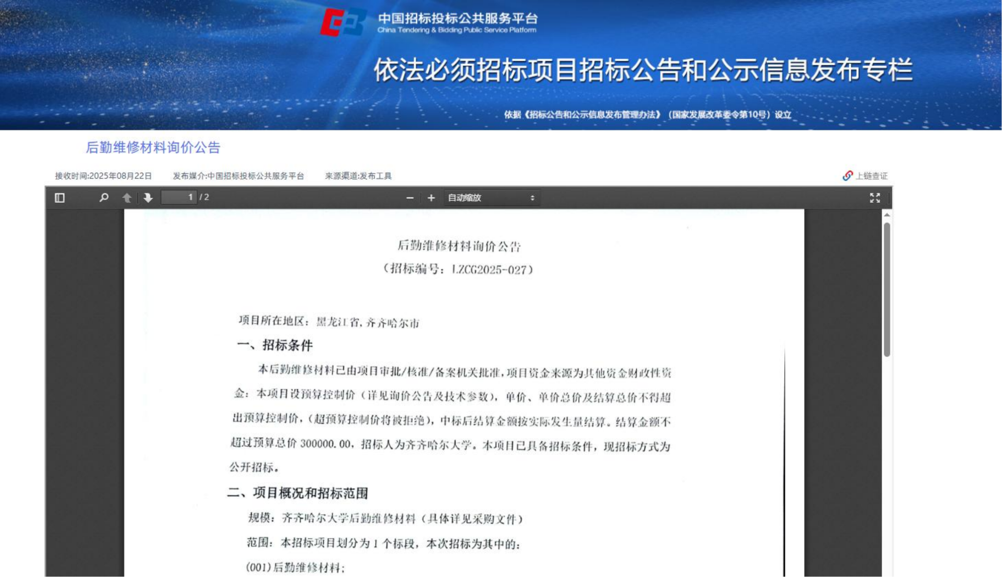 下一条:齐齐哈尔大学食堂洗碗设备采购(二次)成交结果公告(转自中国招标投标公共服务平台)