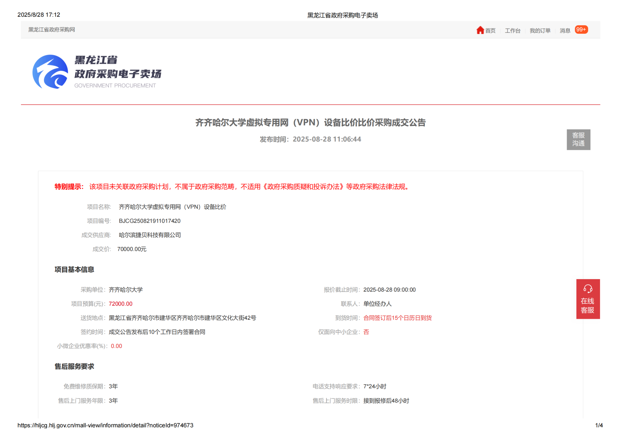 下一条:齐齐哈尔大学虚拟专用网(VPN)设备比价采购需求公告(转自黑龙江省政府采购网)