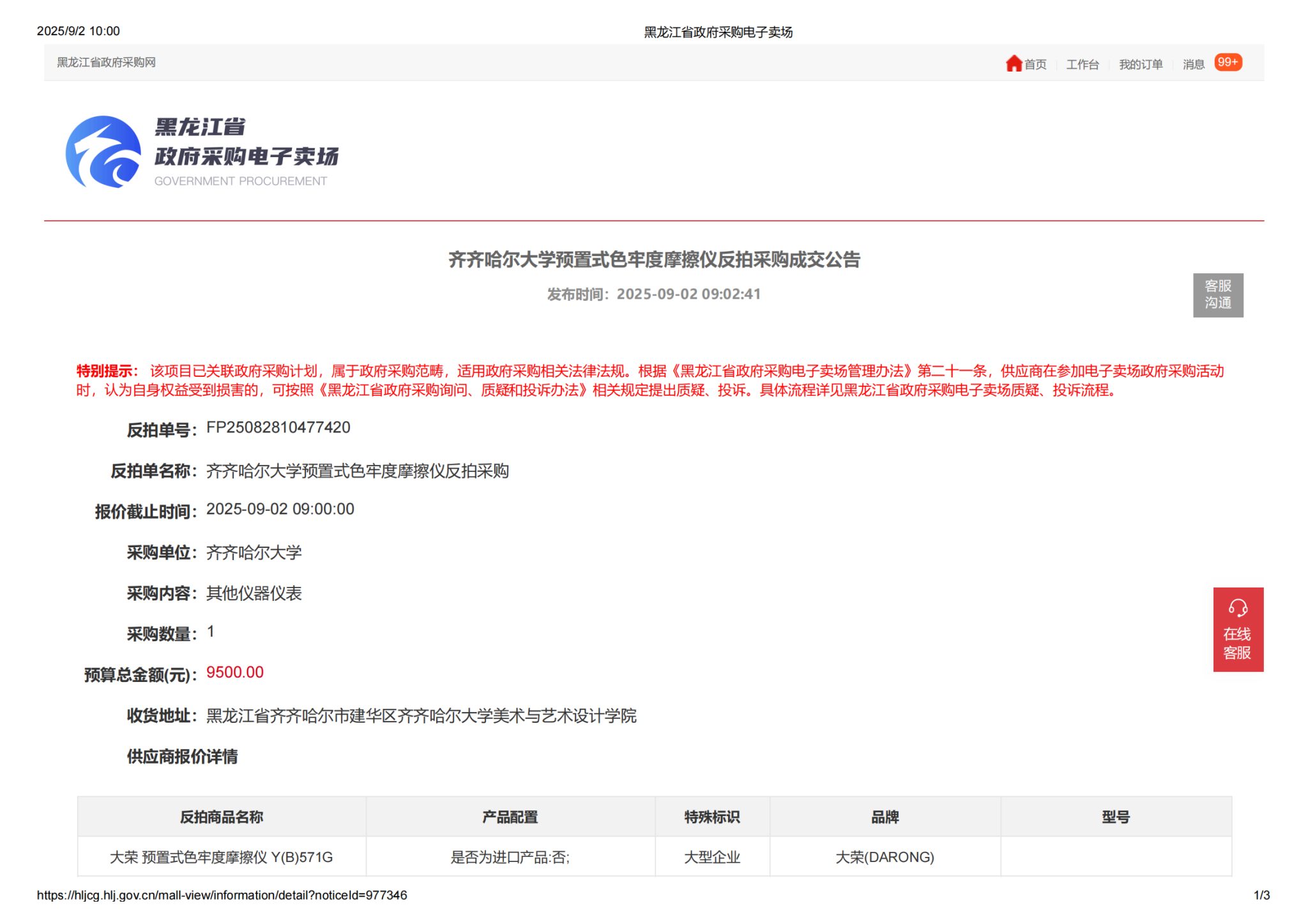 下一条:齐齐哈尔大学耐洗色牢度试验机反拍采购成交公告(转自黑龙江省政府采购网)