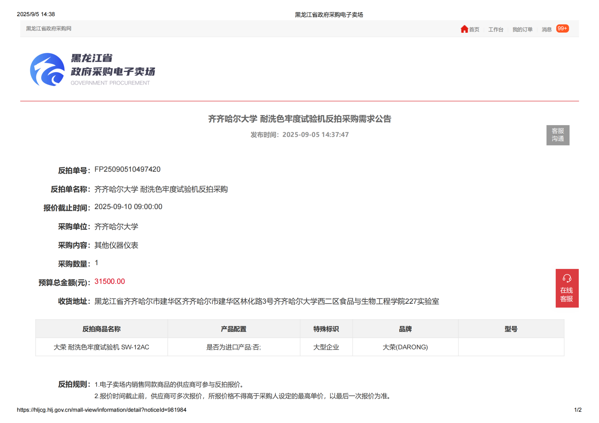 下一条:齐齐哈尔大学耐洗色牢度试验机反拍采购废标公告(转自黑龙江省政府采购网)