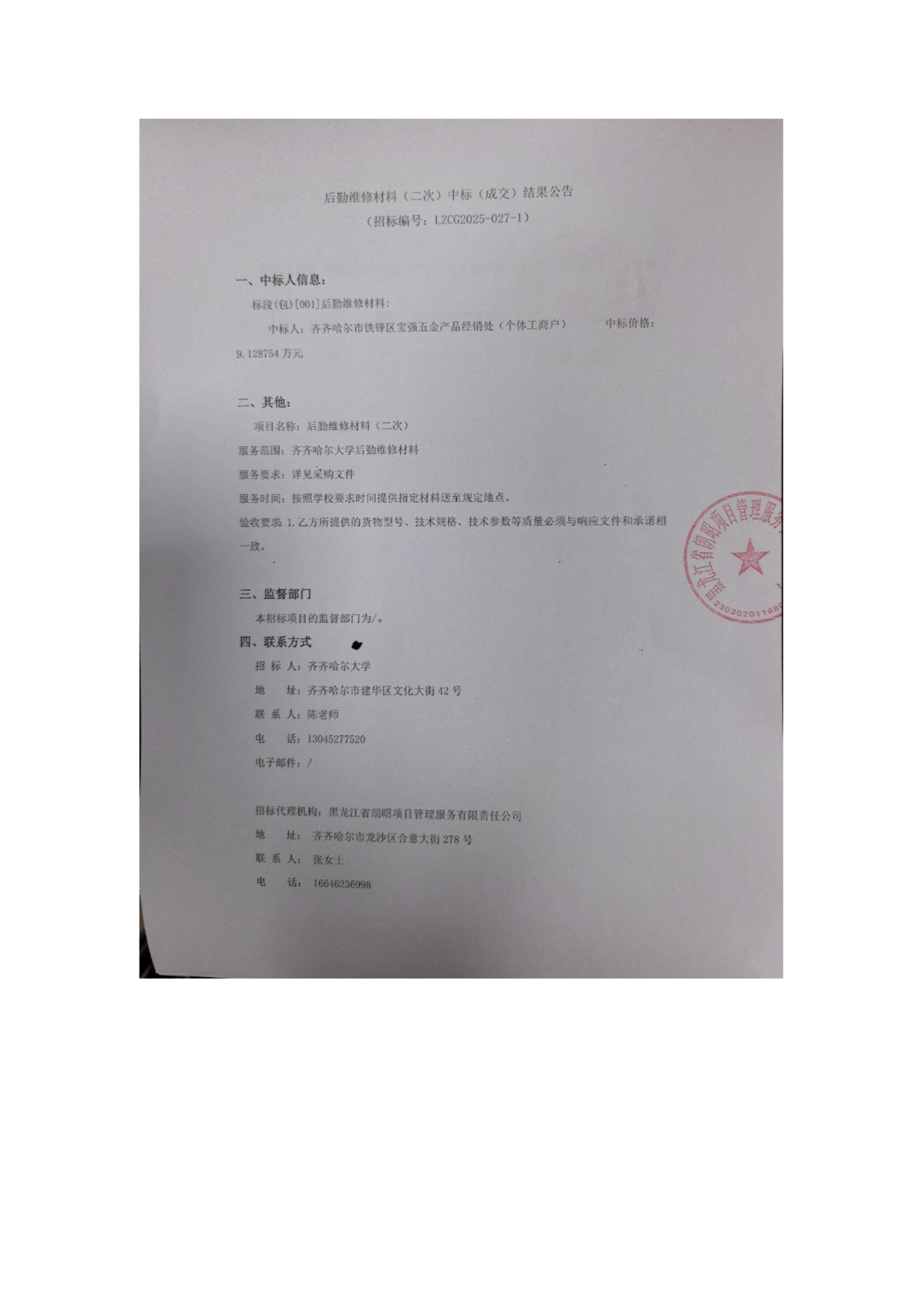 下一条:齐齐哈尔大学危险化学品暂存站建设项目(三次)竞争性磋商公告(转自黑龙江省政府采购网)