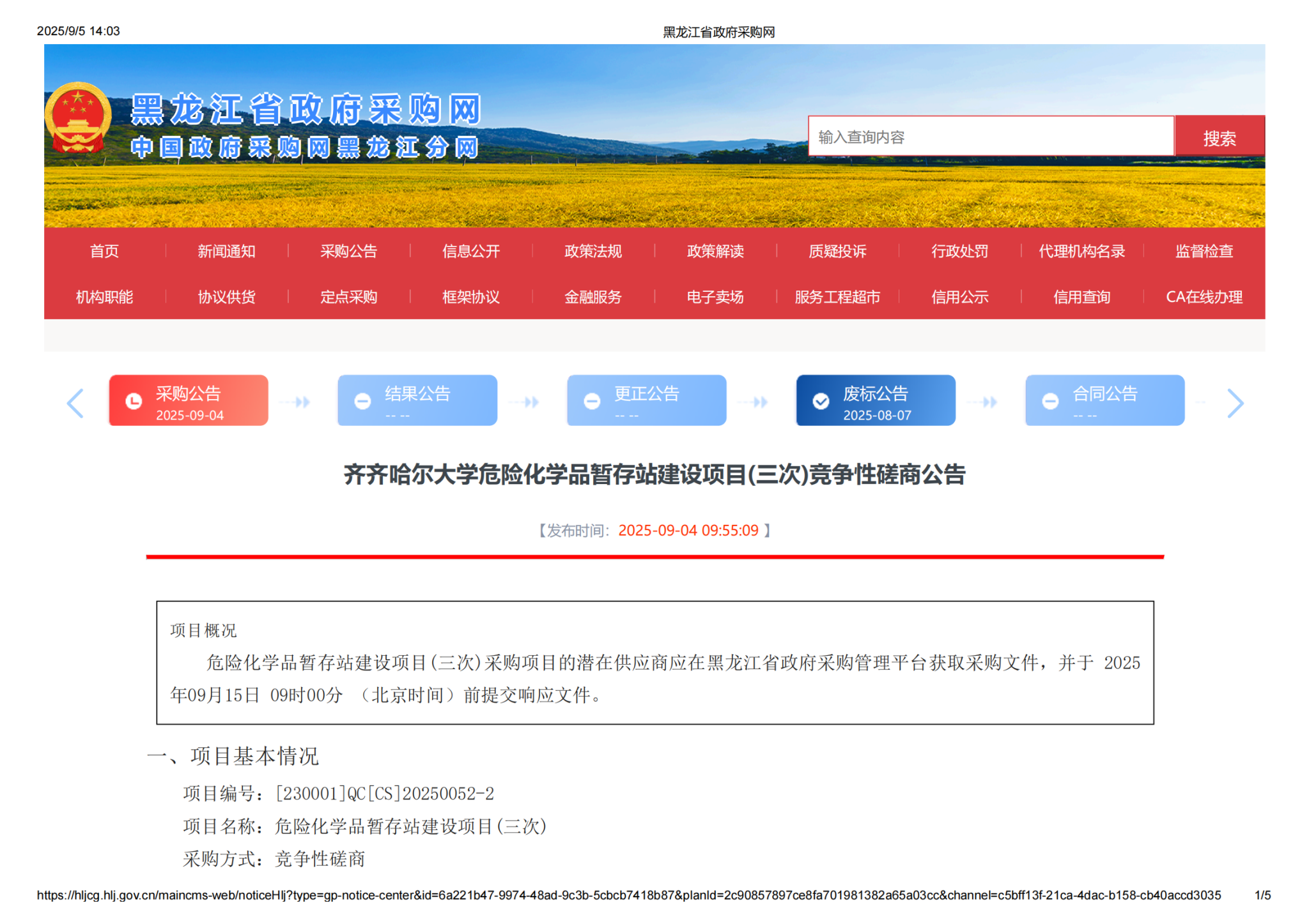 下一条:齐齐哈尔大学离子色谱采购项目采购更正公告(第一次)(转自黑龙江省政府采购网)
