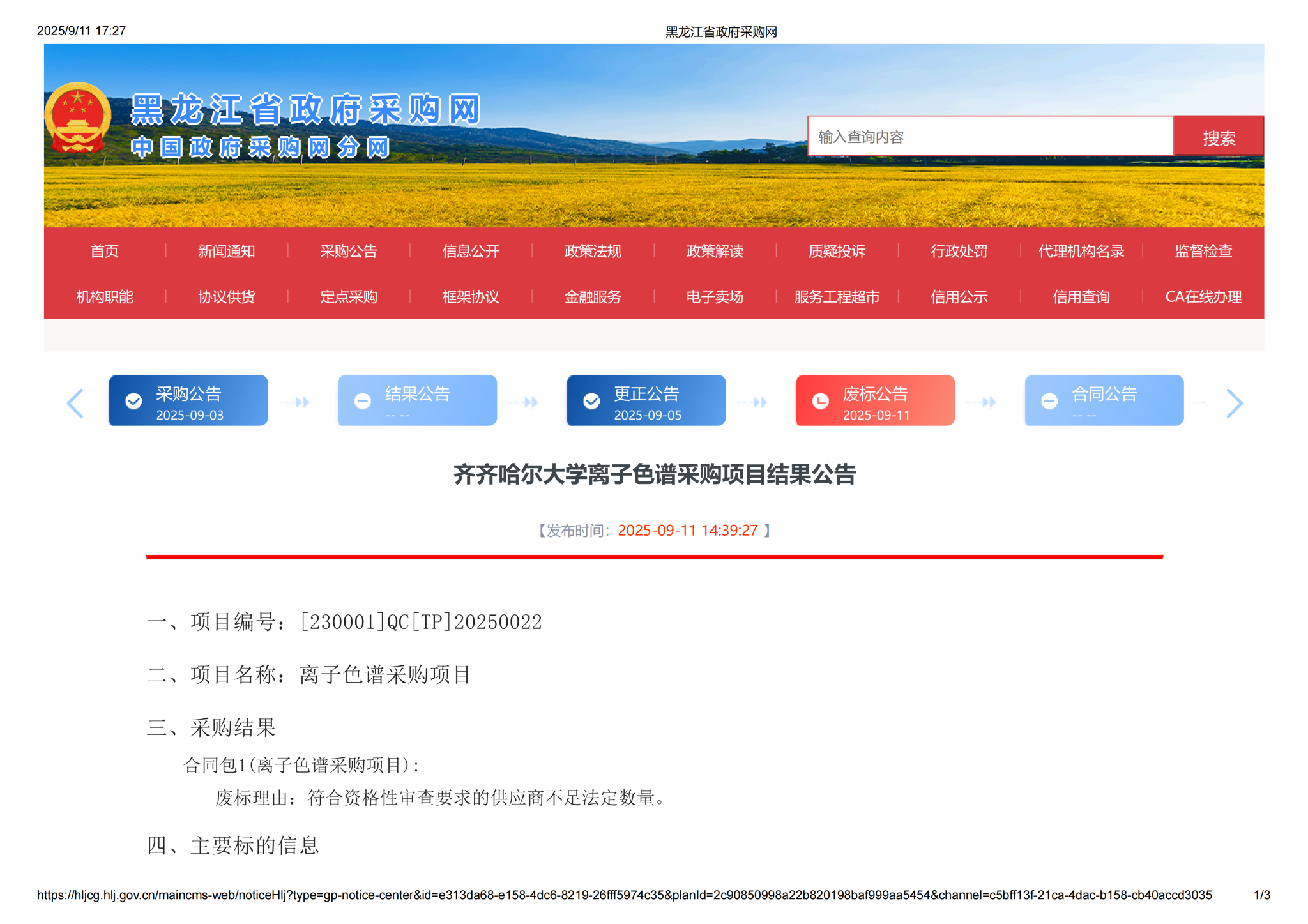 上一条:齐齐哈尔大学危险化学品暂存站建设项目(三次)中标(成交)结果公告(转自黑龙江省政府采购网)