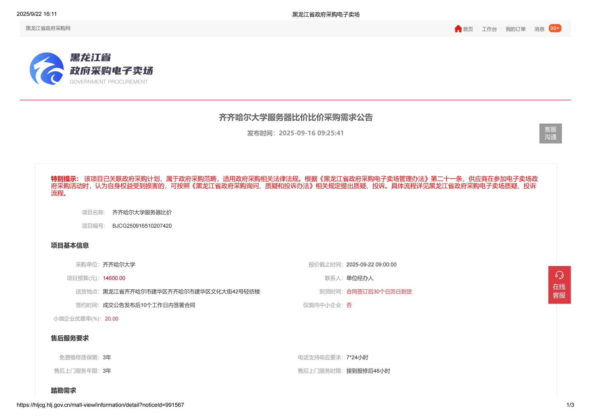 上一条:齐齐哈尔大学教学仪器比价采购需求公告(三次)(转自黑龙江省政府采购网)