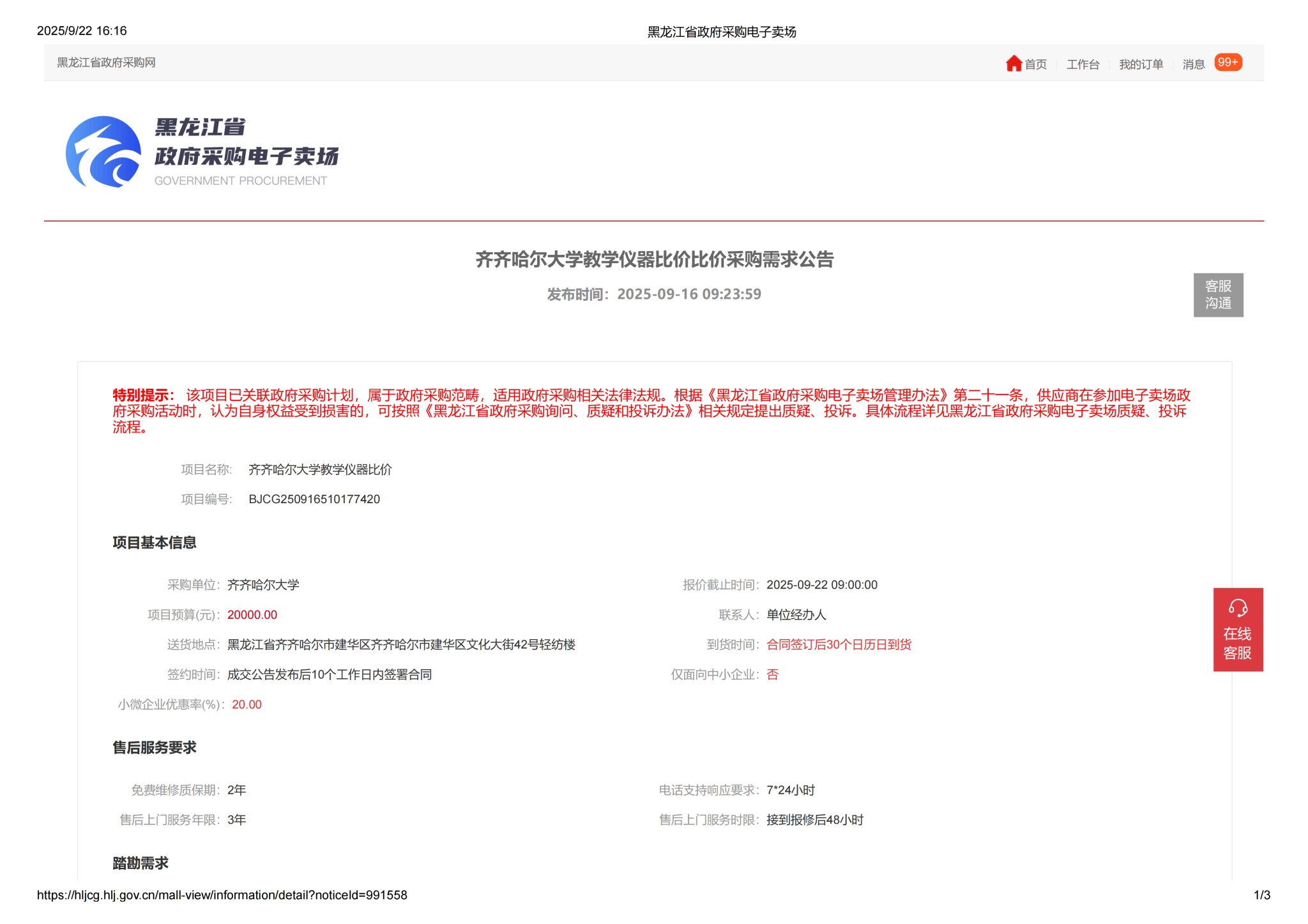 上一条:齐齐哈尔大学教学仪器比价采购需求公告.(三次)(转自黑龙江省政府采购网)