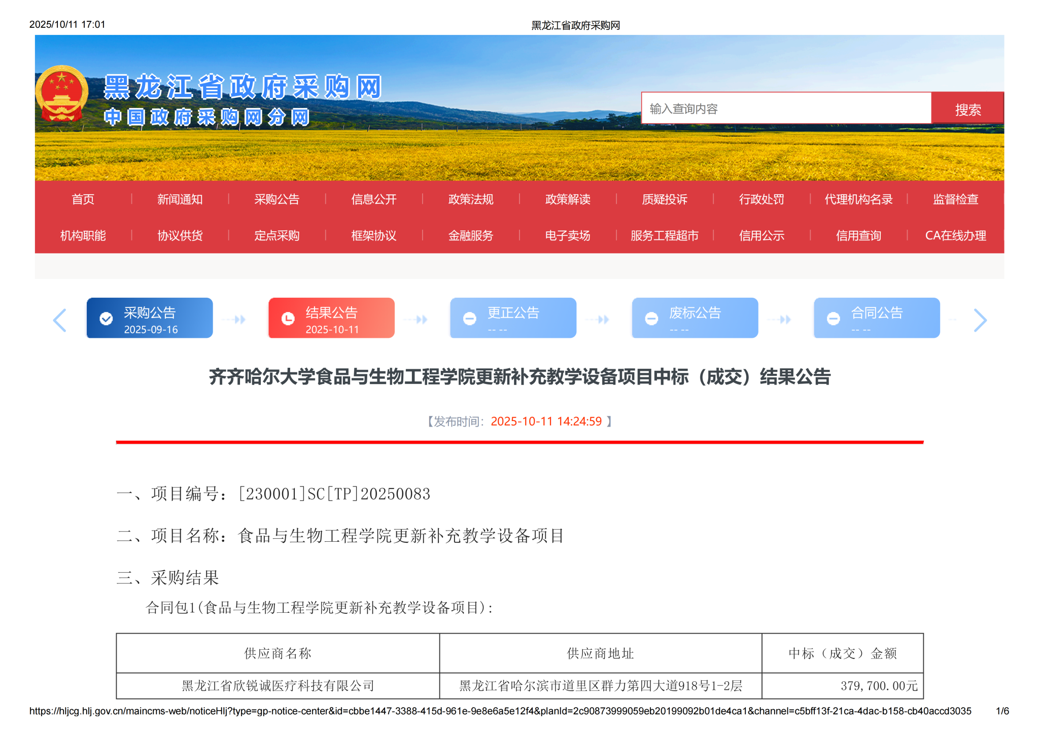 上一条:齐齐哈尔大学可燃气体及有毒气体报警器进行校准检测服务比价采购公告(转自黑龙江省政府采购网)