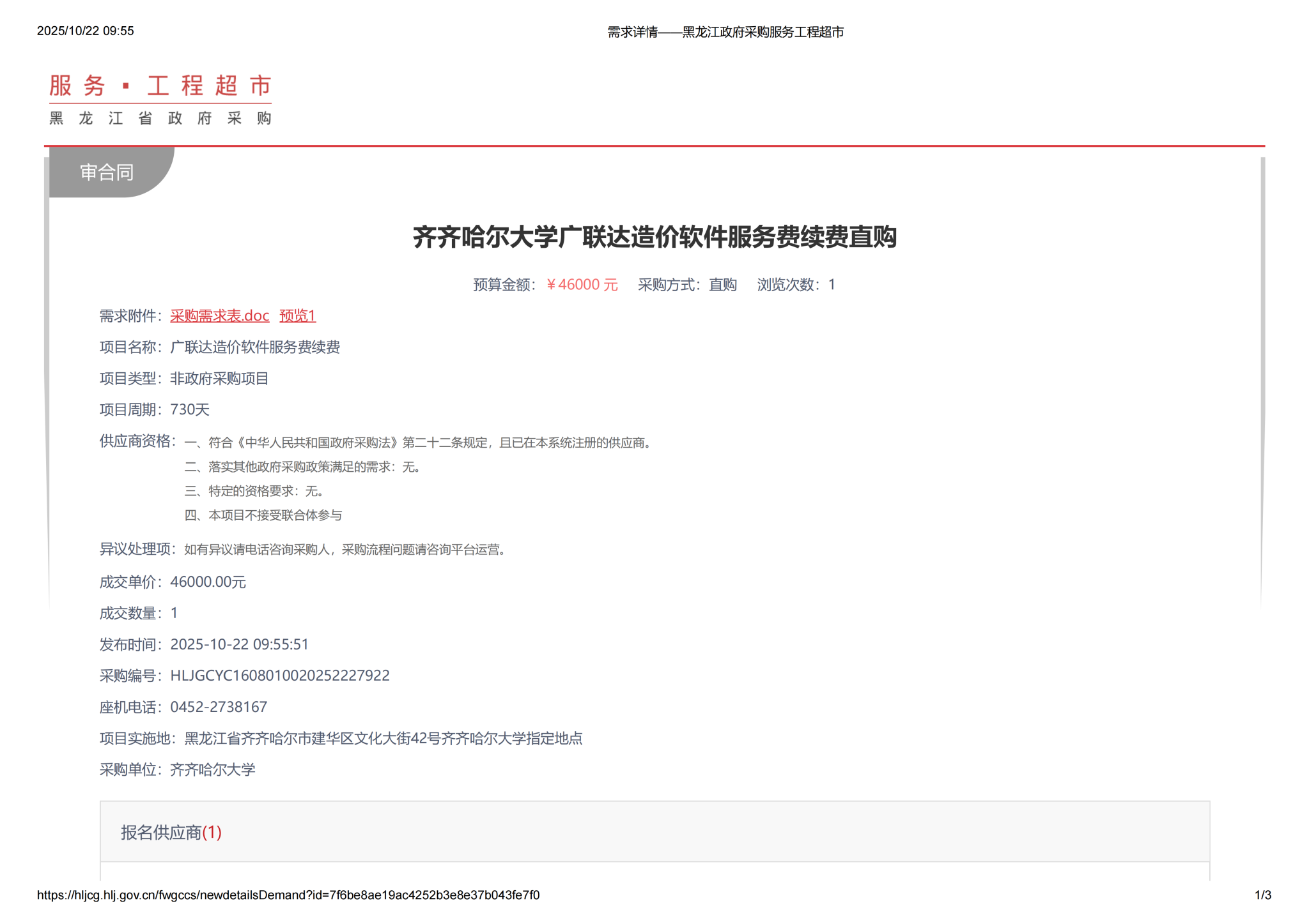下一条:齐齐哈尔大学数字新商业产业学院数字营销实践教学课程建设服务采购比价采购公告(转自黑龙江省政府采购网)