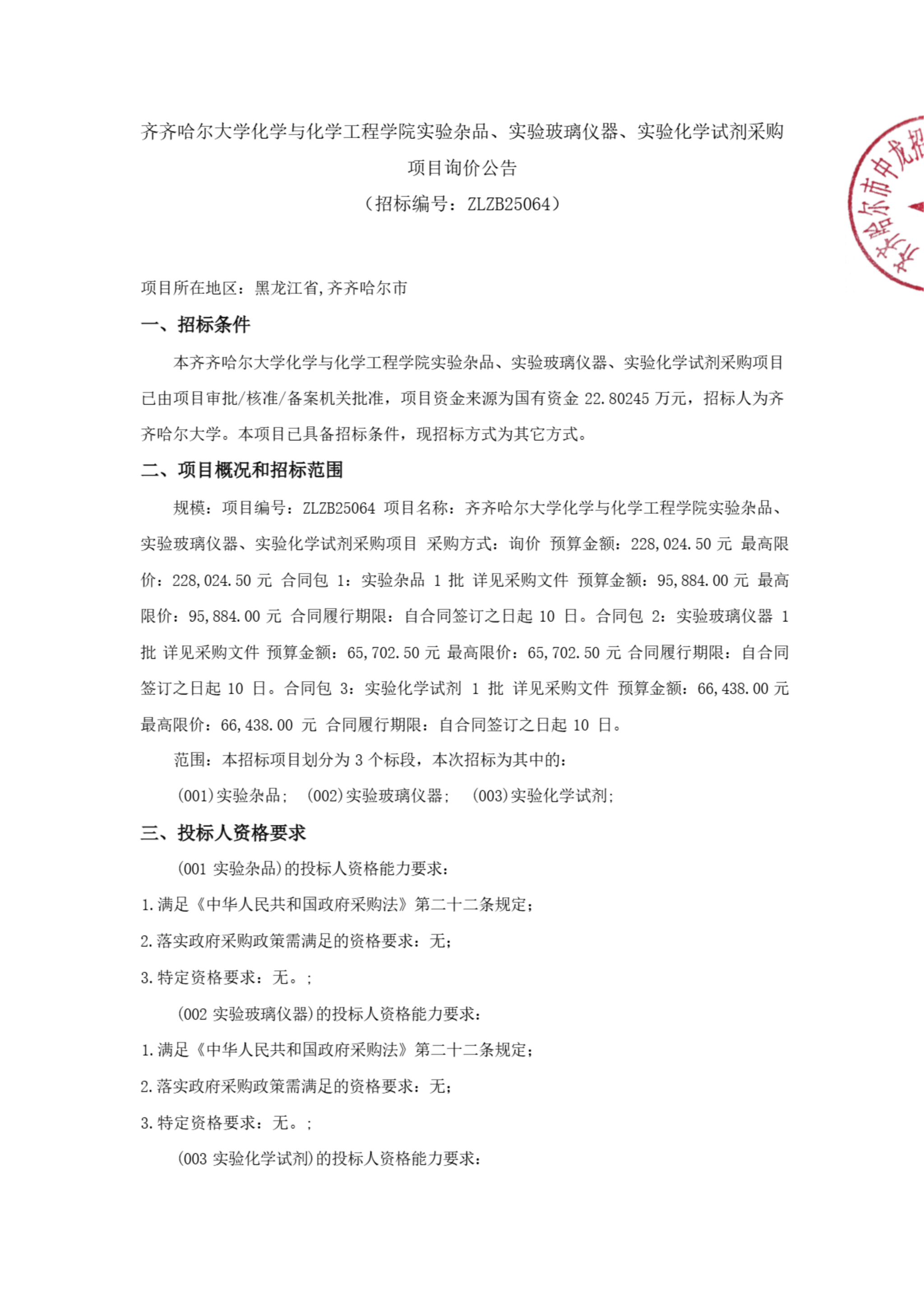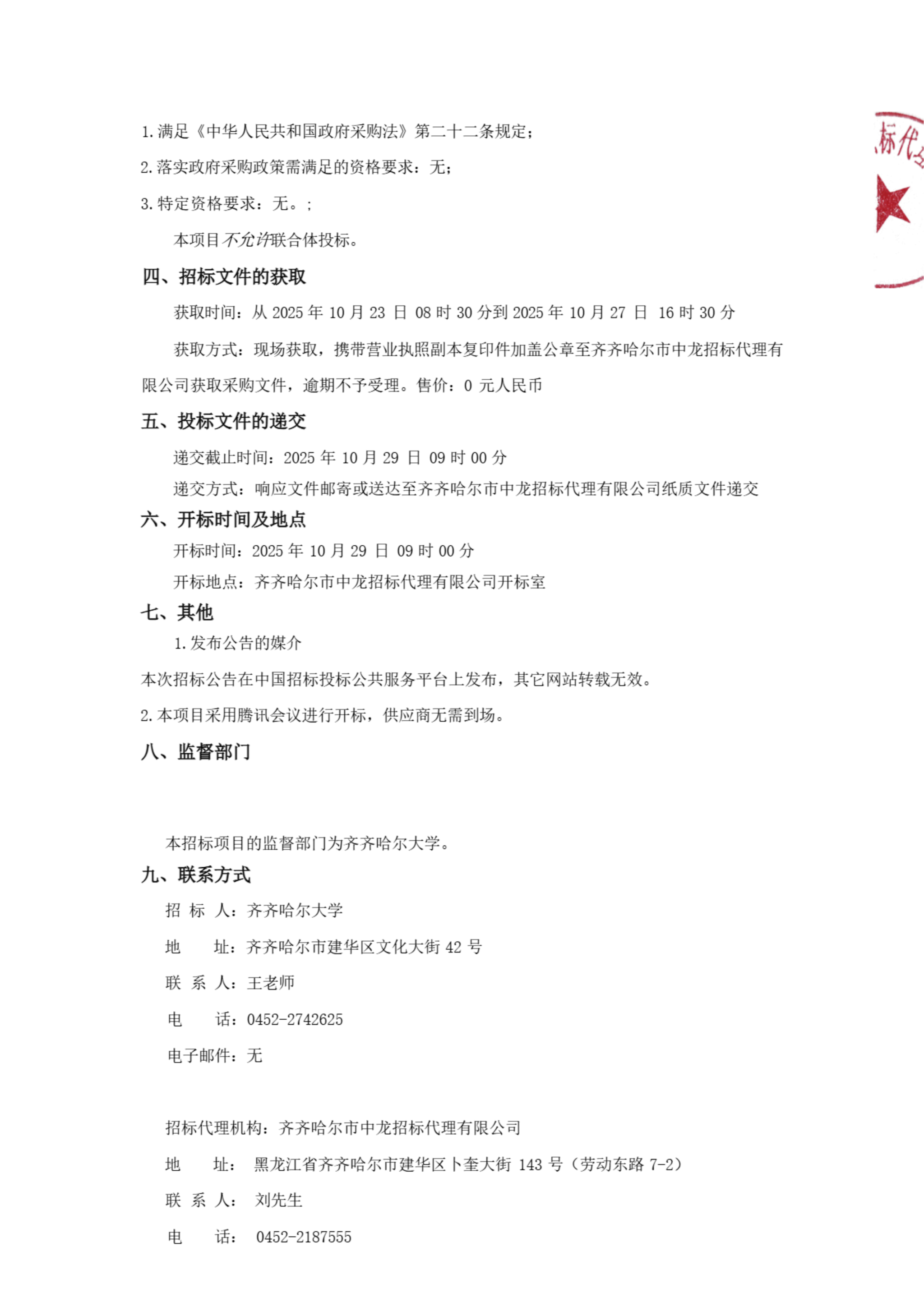 下一条:齐齐哈尔大学可燃气体及有毒气体报警器进行校准检测服务(第2次)结果公告(转自黑龙江省政府采购网)