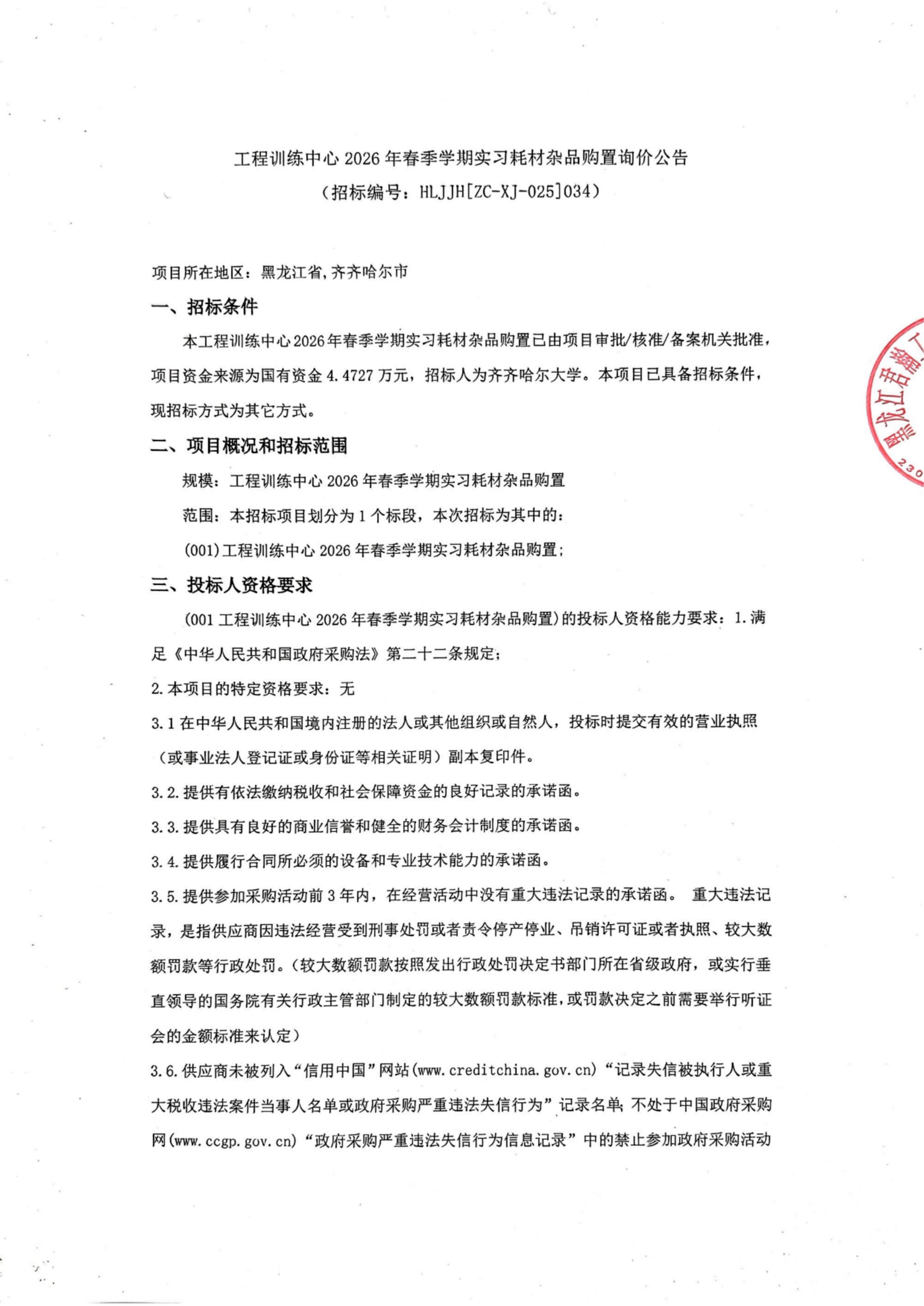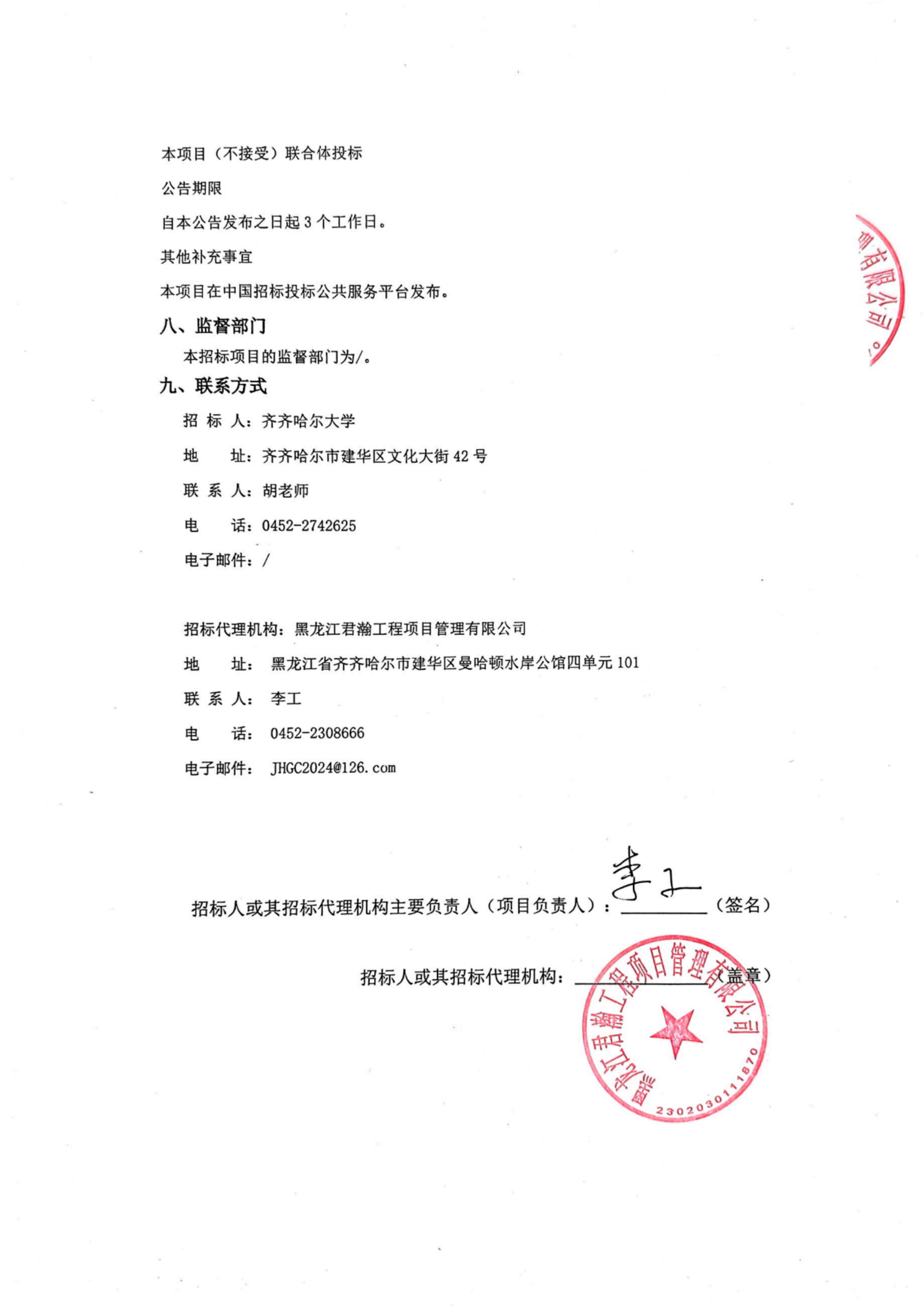 上一条:齐齐哈尔大学纺织品检测设备采购项目竞争性谈判公告(转自黑龙江省政府采购网)