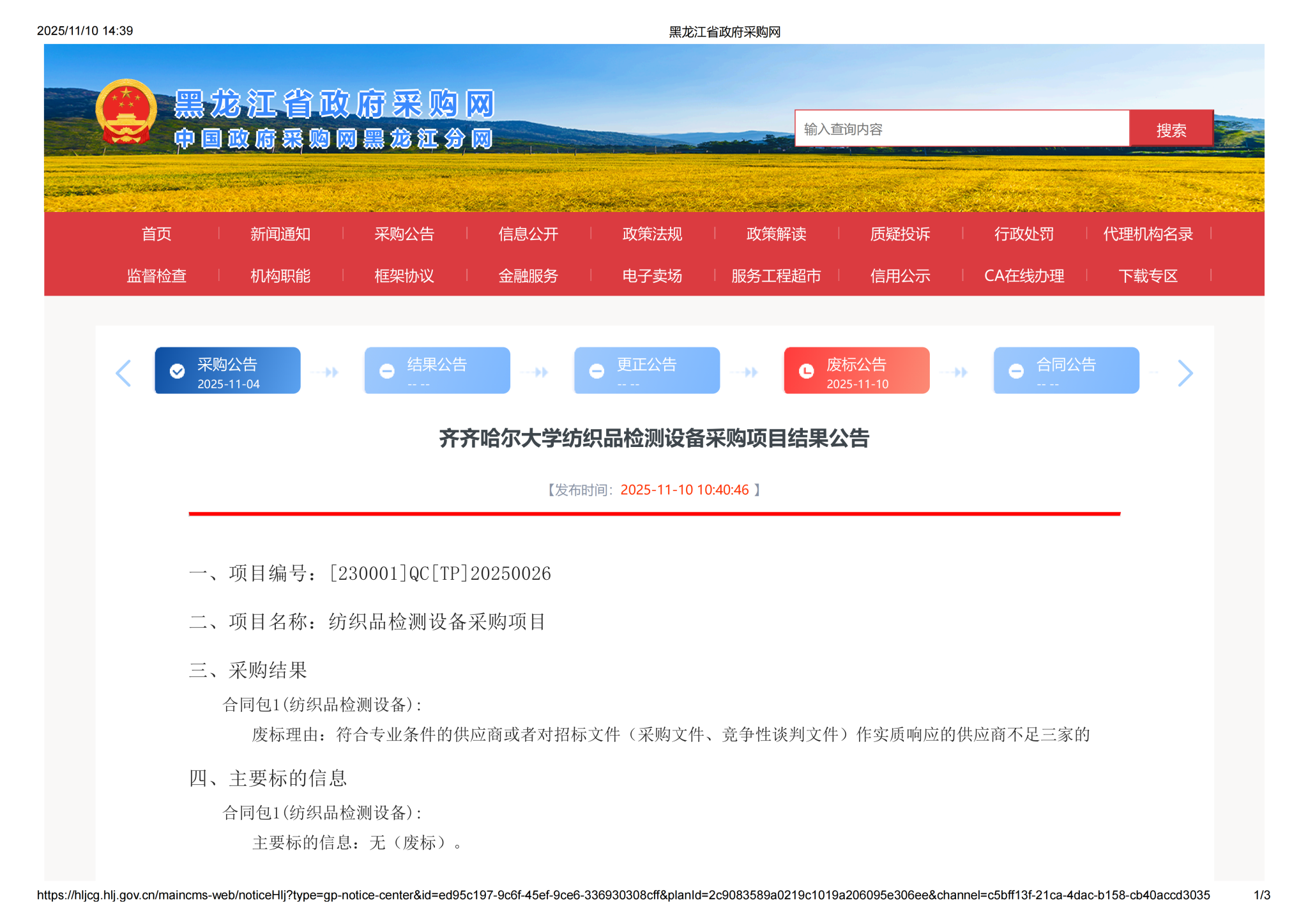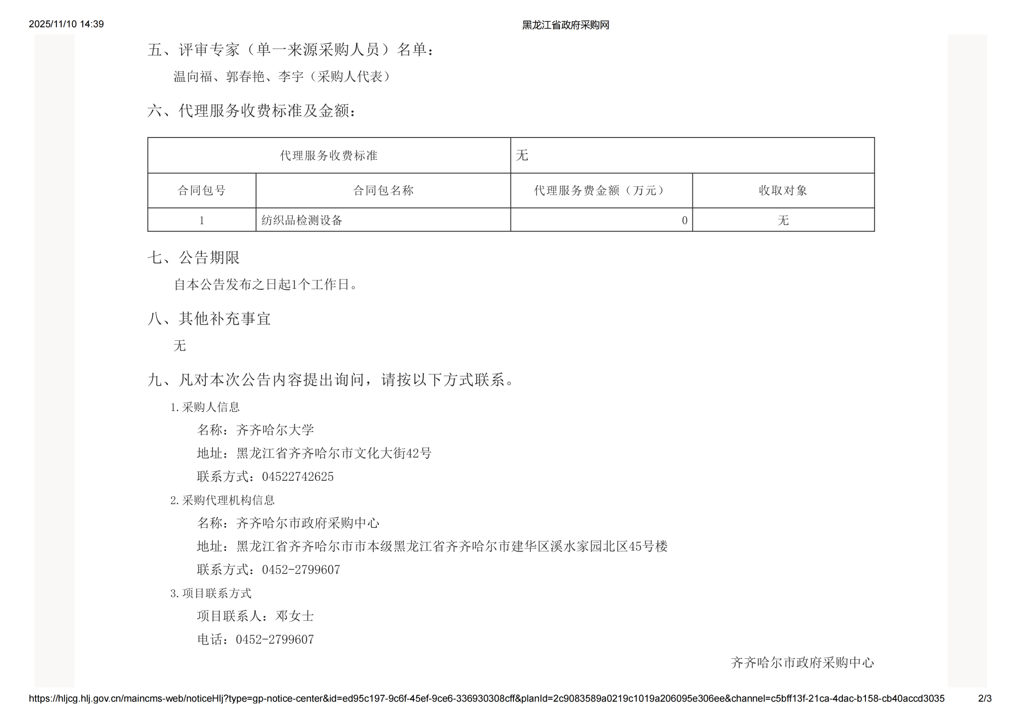 下一条:齐齐哈尔大学纺织品检测设备采购项目竞争性谈判公告(转自黑龙江省政府采购网)