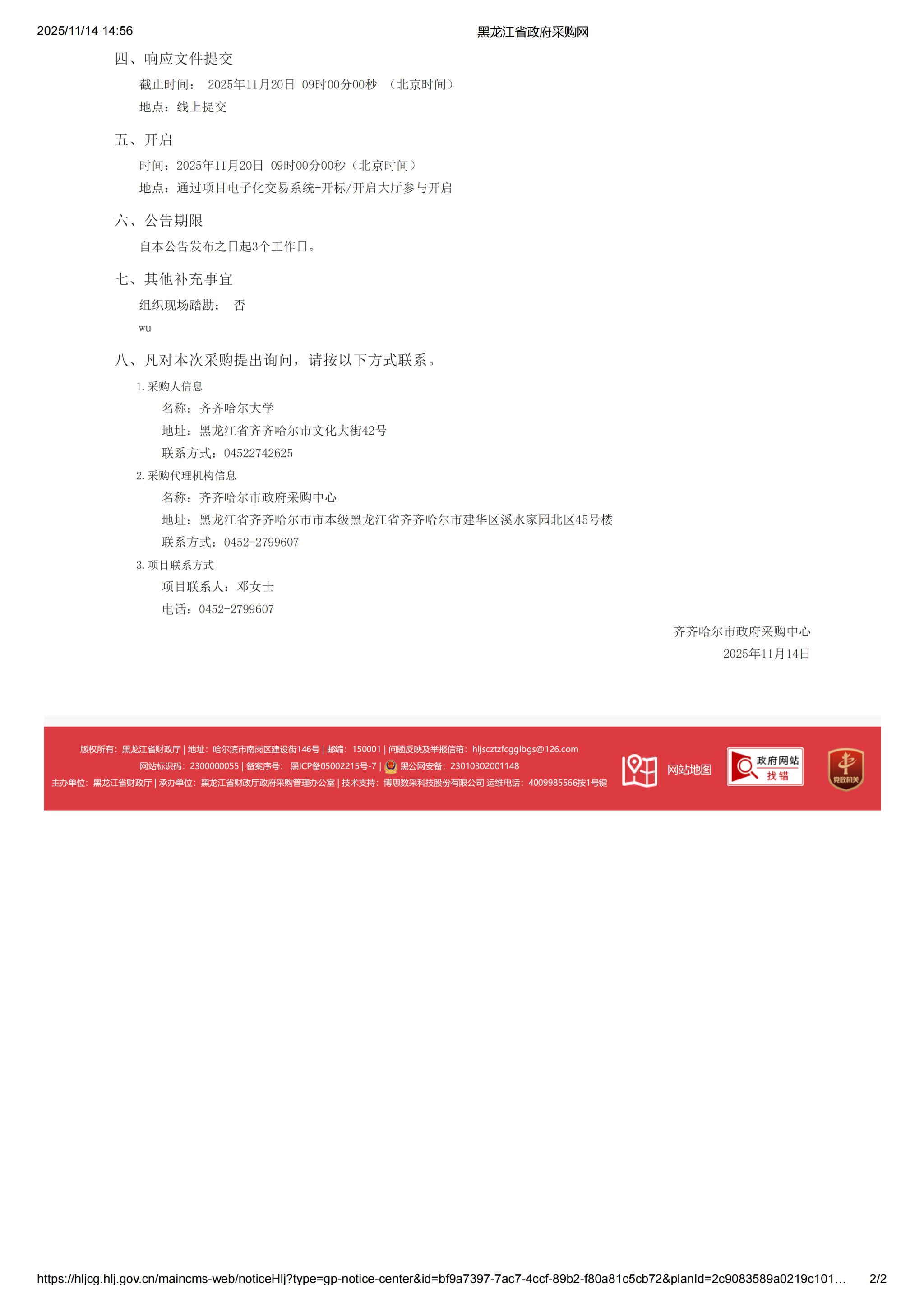 下一条:齐齐哈尔大学设备更新项目编制可行性研究报告直购(转自黑龙江省政府采购网)