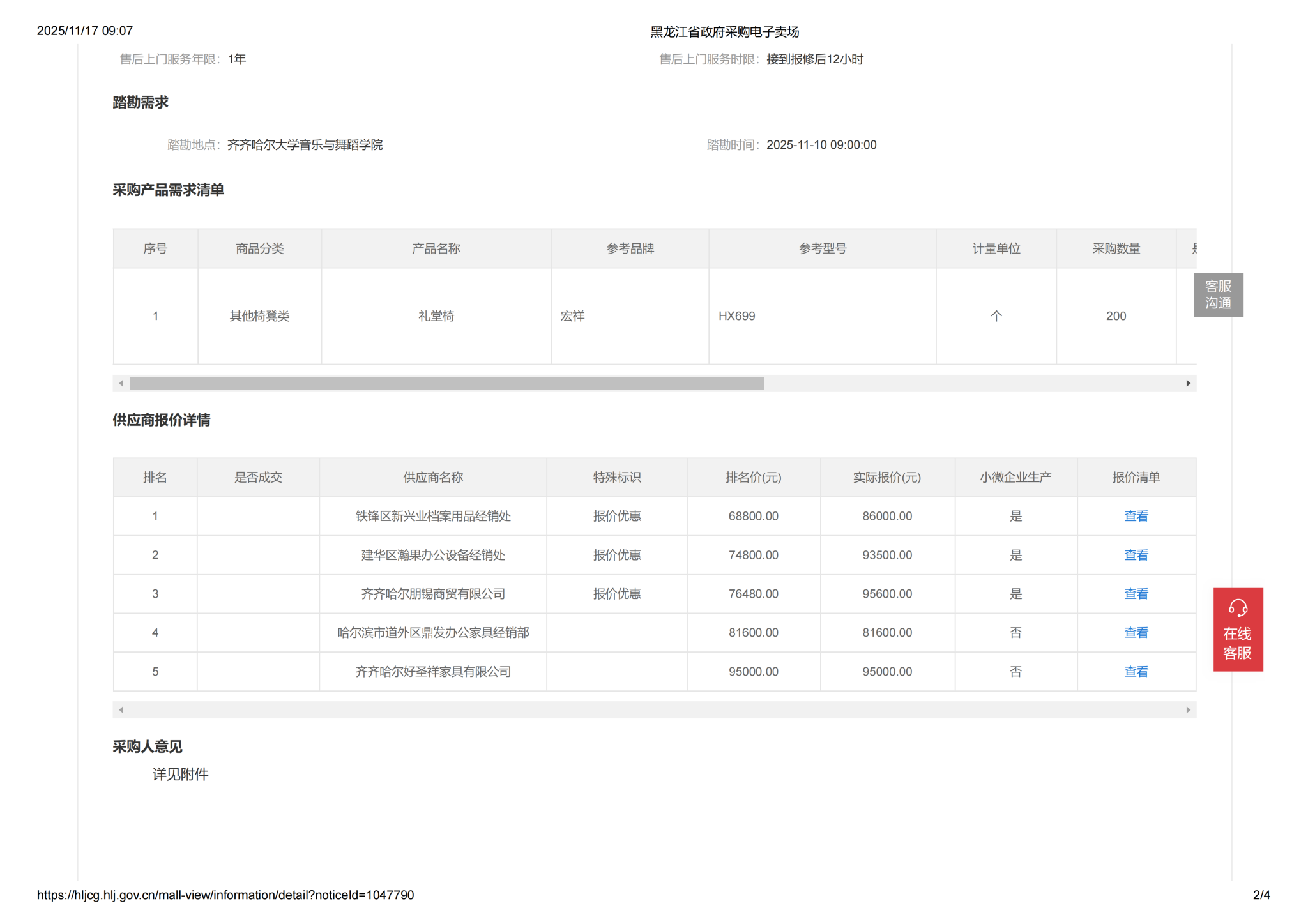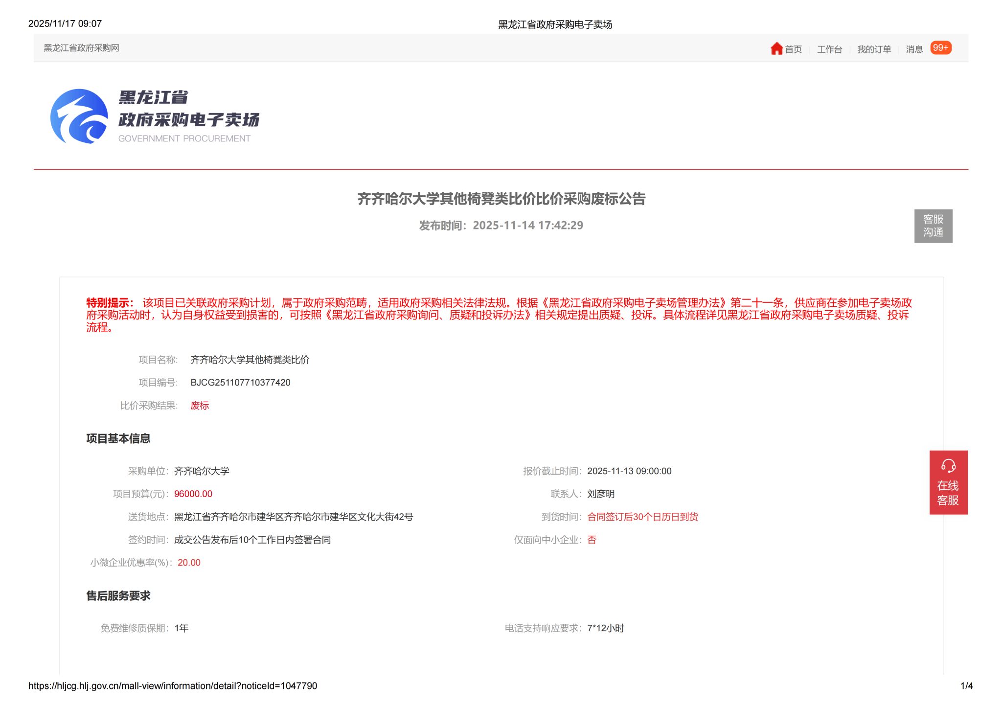 上一条:齐齐哈尔大学其他椅凳类比价采购需求公告(转自黑龙江省政府采购网)