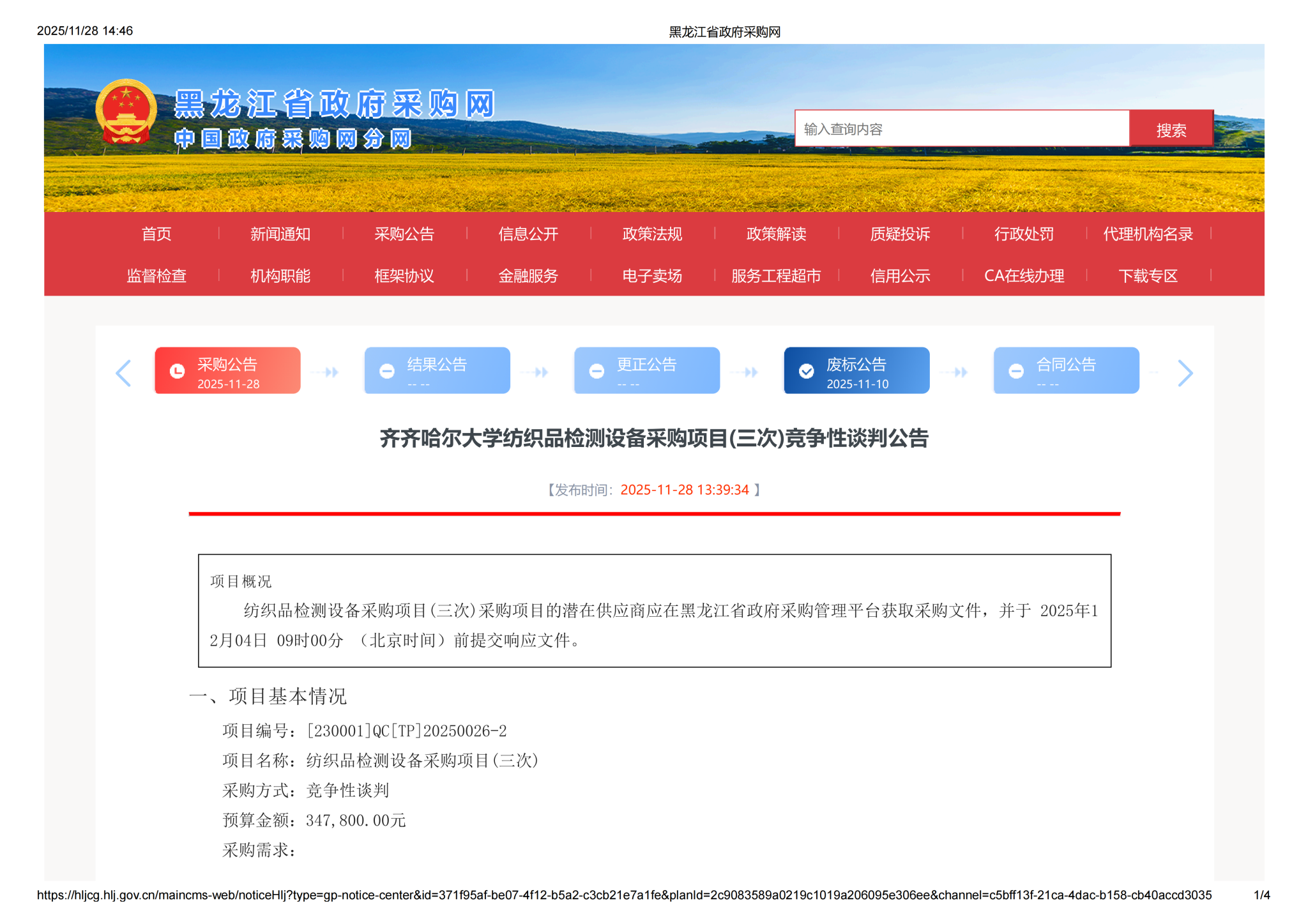 上一条:齐齐哈尔大学纺织品检测设备采购项目(三次)中标(成交)结果公告(转自黑龙江省政府采购网)