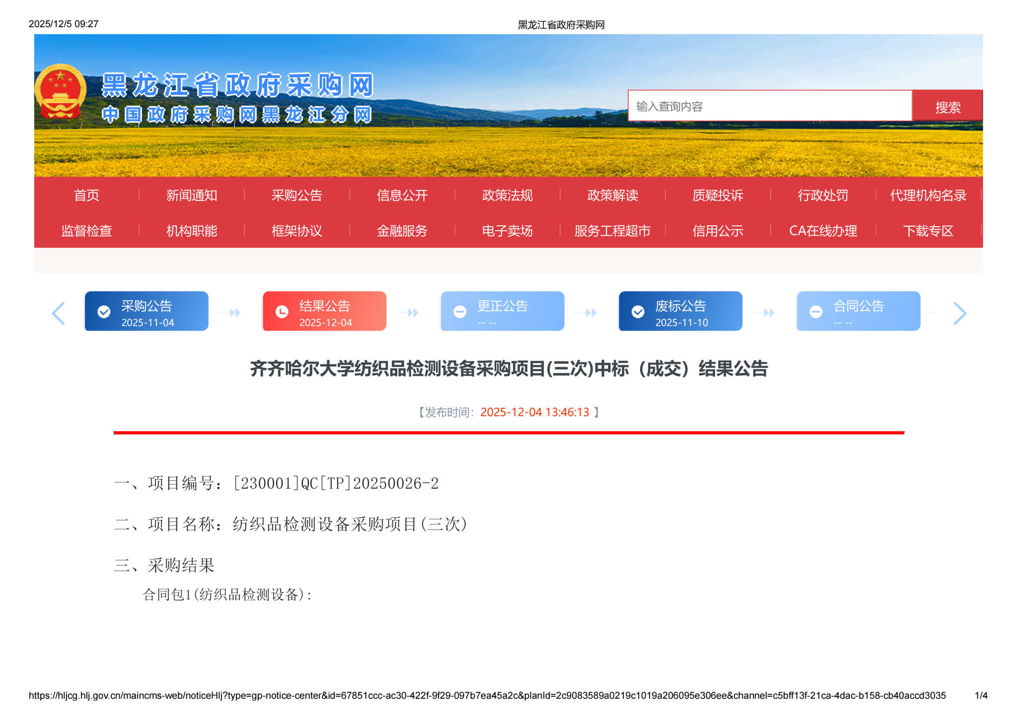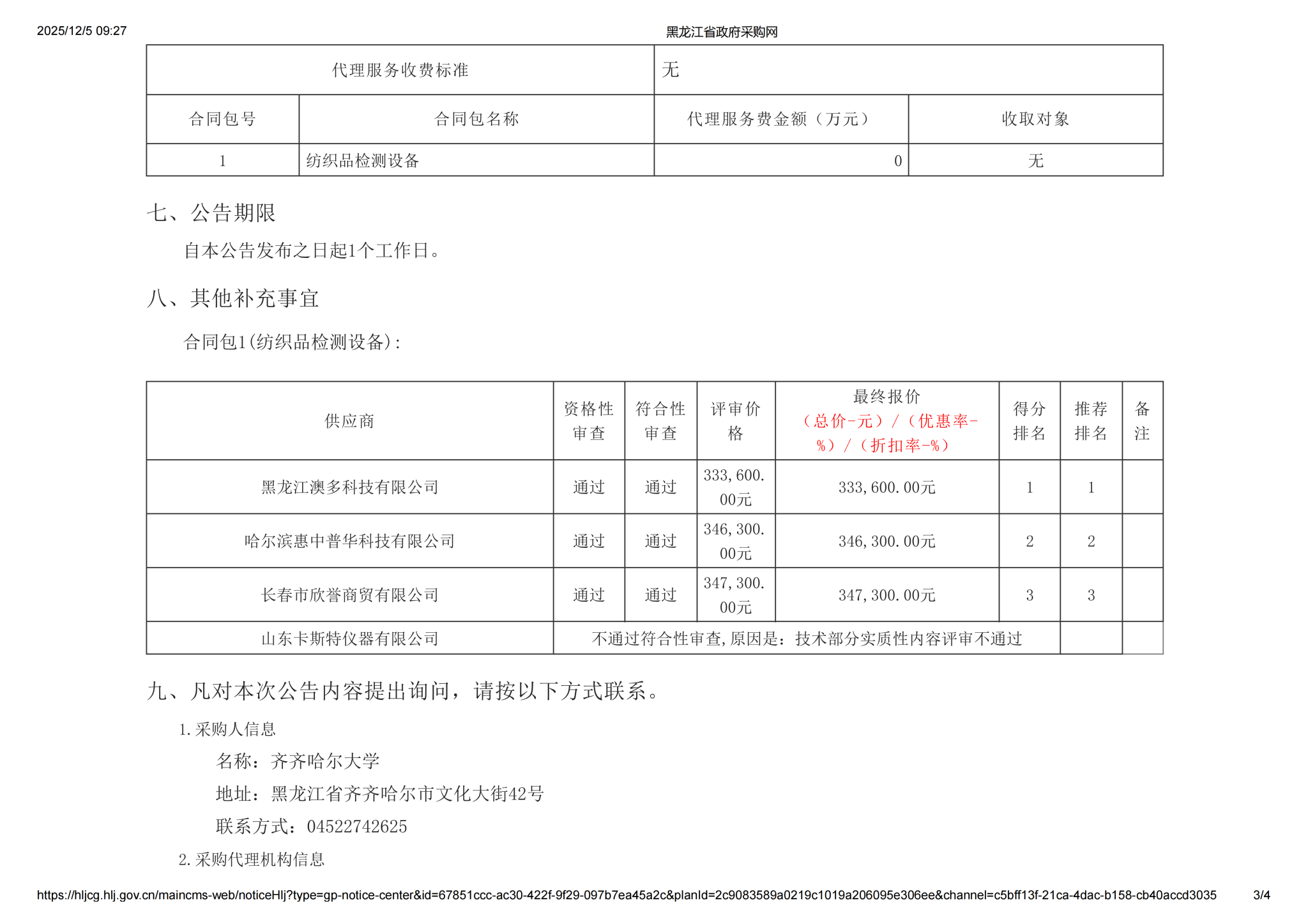 下一条:齐齐哈尔大学纺织品检测设备采购项目(三次)竞争性谈判公告(转自黑龙江省政府采购网)