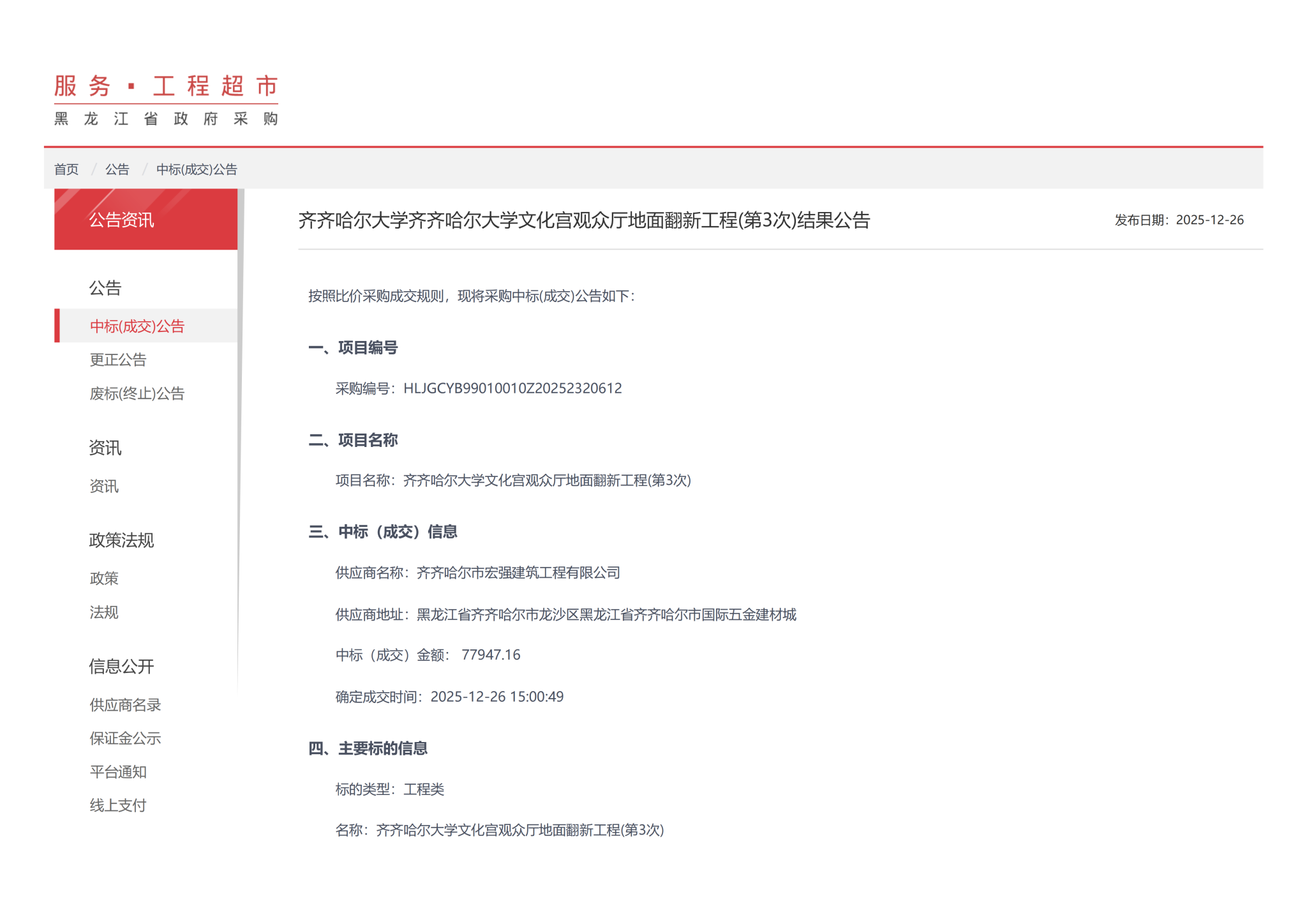 上一条:2025年齐齐哈尔大学“走读式”谈话室维修改造项目(第4次)比价采购公告(转自黑龙江省政府采购网)
