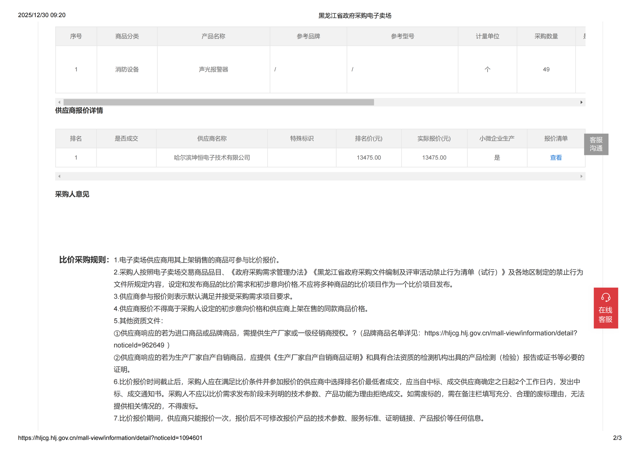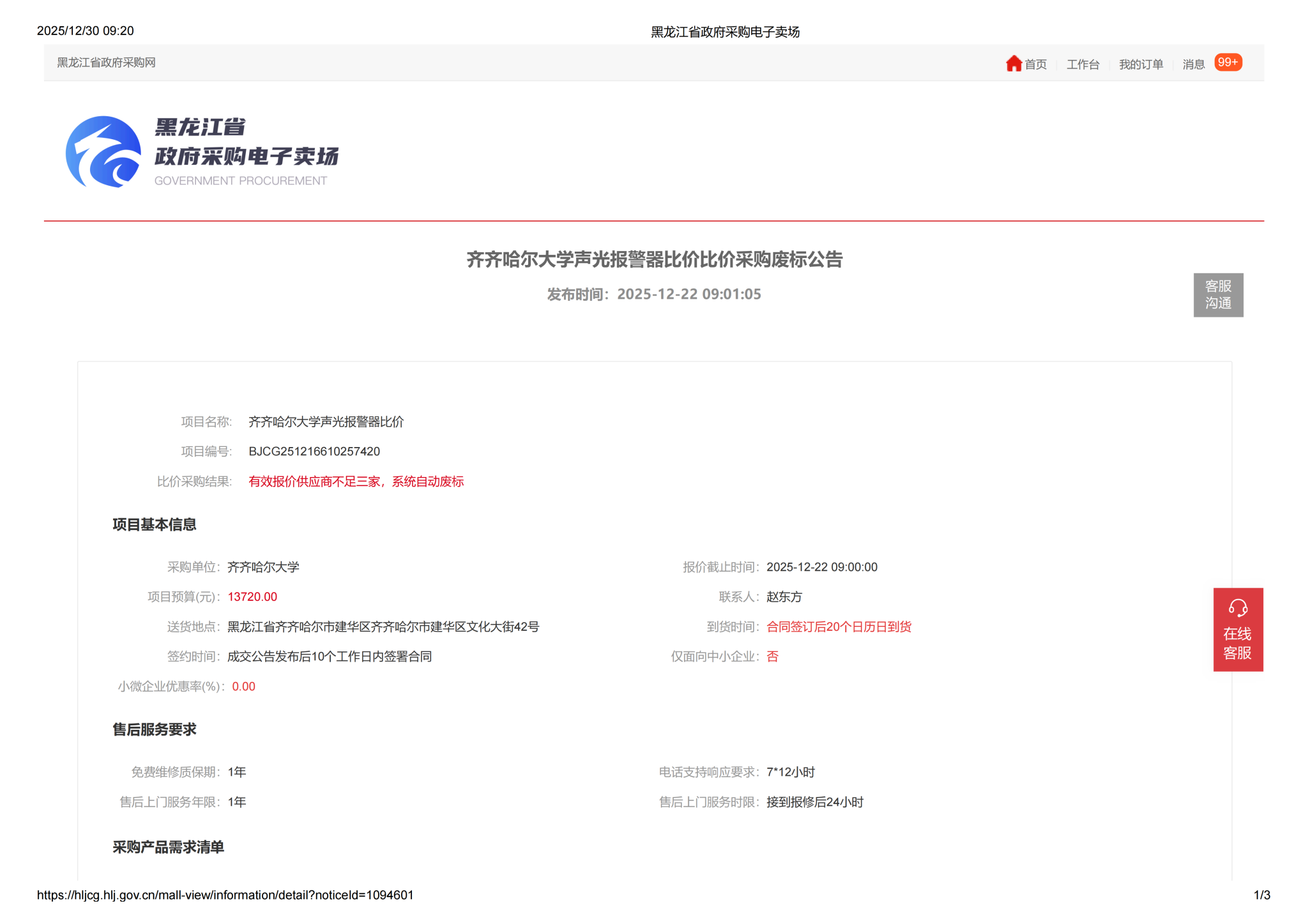下一条:齐齐哈尔大学食堂声光报警器比价采购需求公告(一次)(转自黑龙江省政府采购网)