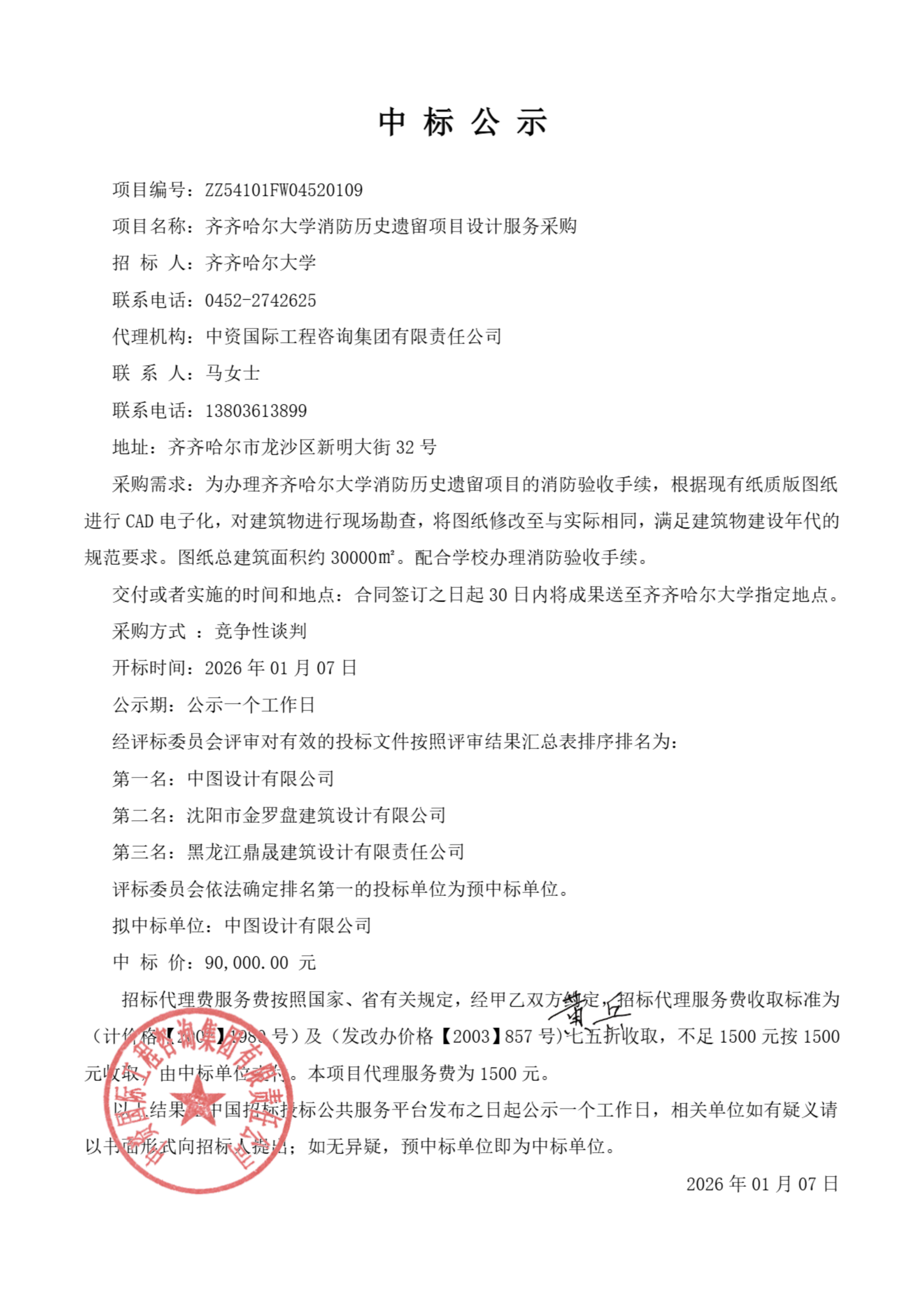 下一条:齐齐哈尔大学2027年后勤改造项目设计、造价咨询服务采购项目采购更正公告(第一次)(转自黑龙江省政府采购网)