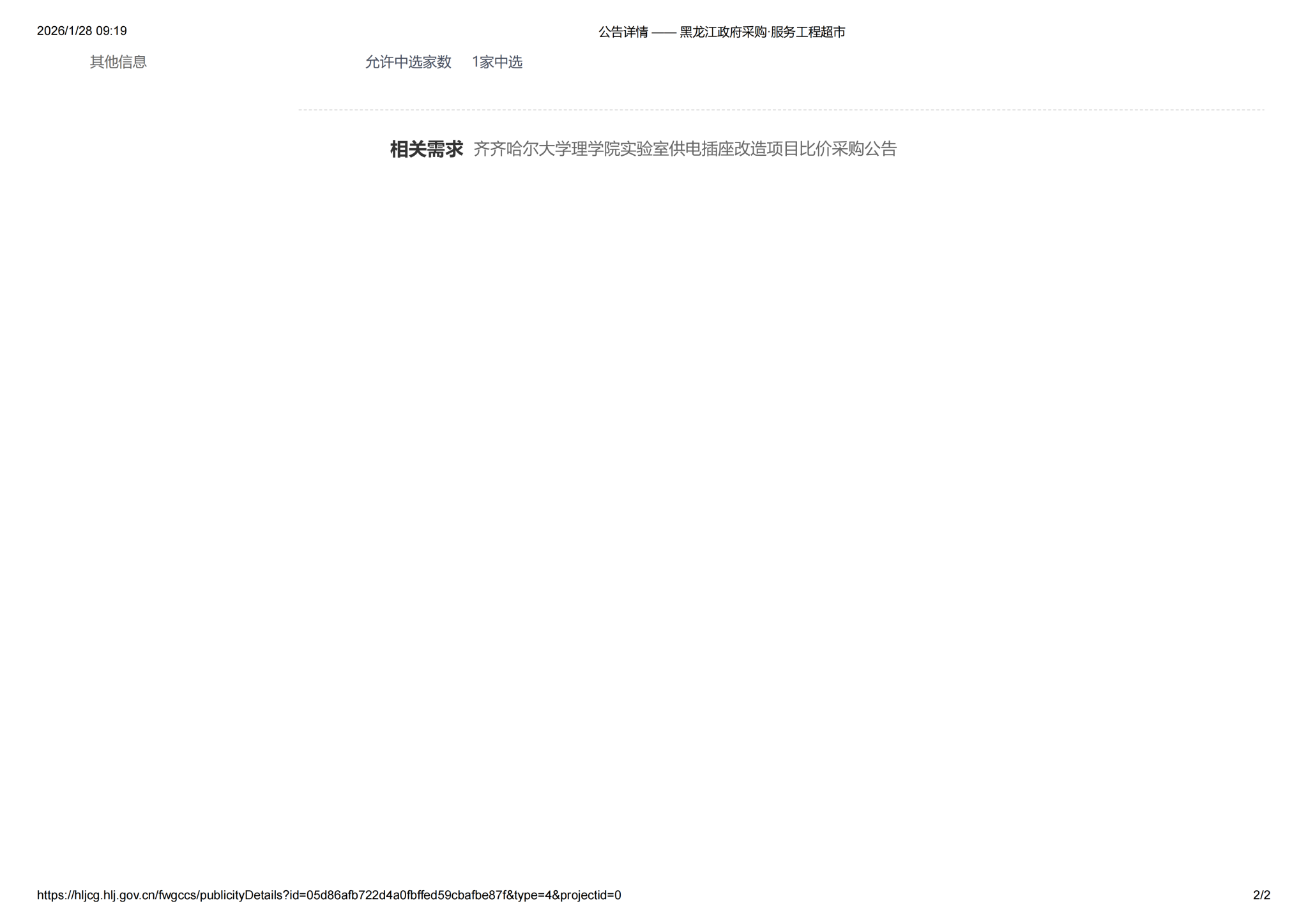 上一条:齐齐哈尔大学理学院实验室供电插座改造项目(第2次)比价采购公告(转自黑龙江省政府采购网)