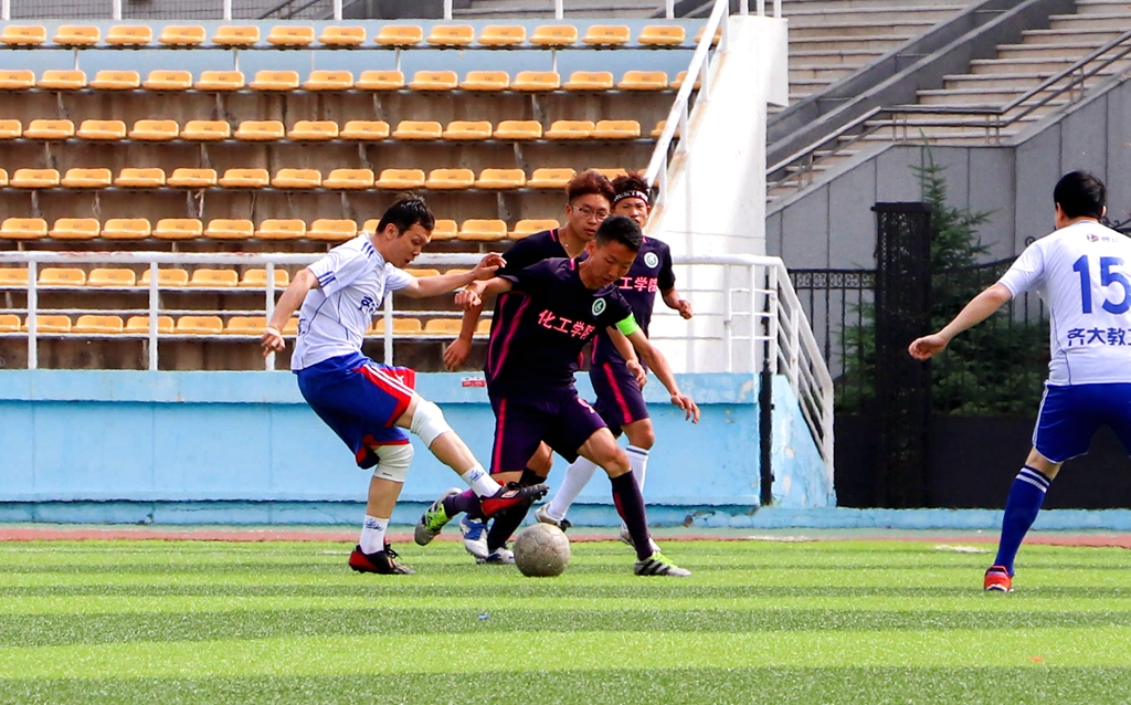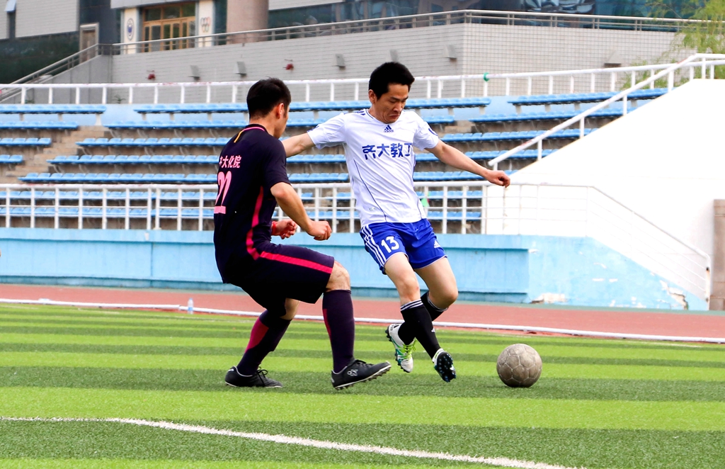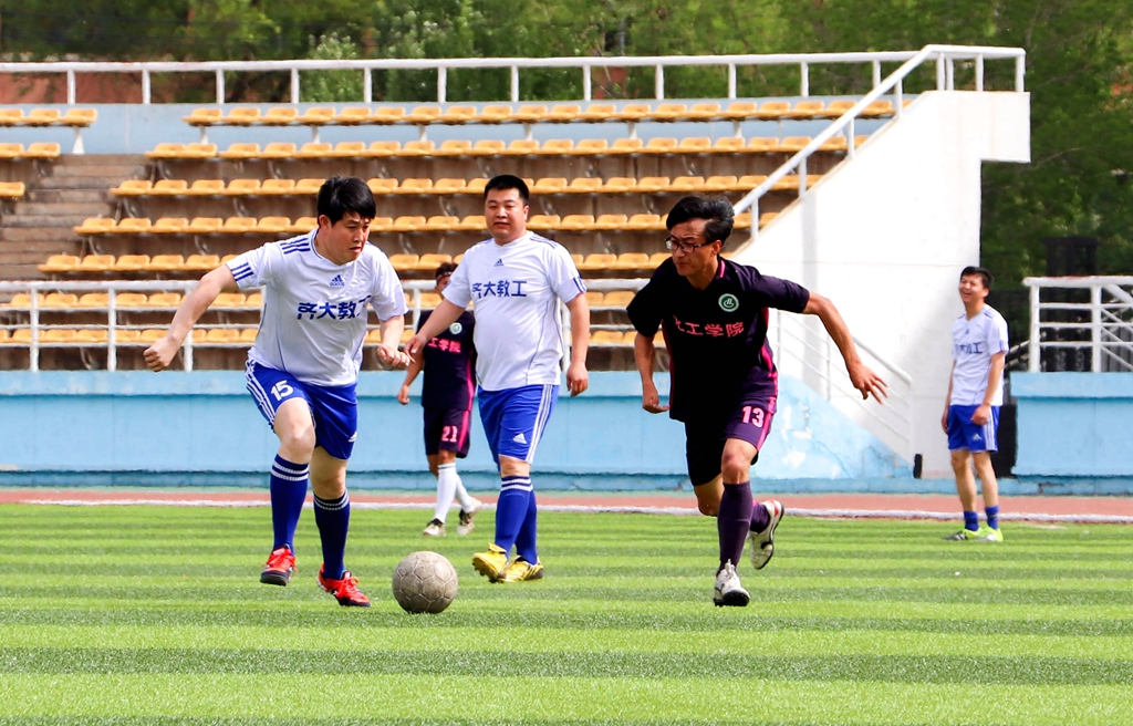 到了下半场,平均年龄三十多岁的教职工队依旧保持着顽强的体力,开始组织更加强势的进攻。在比赛临近结束的时候,教职工队穿过层层防守,倚靠队友配合,顺利地进行了一次打门,将比分变成了2:1。化工球队也是始终保持着进攻状态,下半场完成了很多次优秀的打门。最终比赛以教职工队2:1化工队结束。