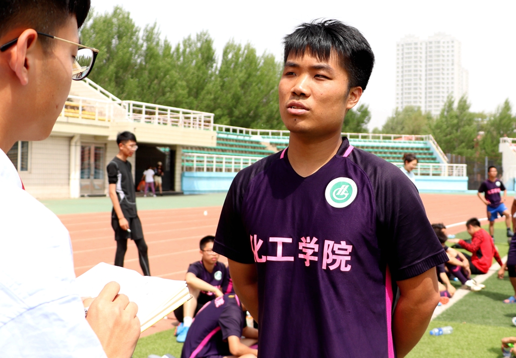 化工球队球员、环境141班的韩晓东同学表示,“现在我已经大四了,在大学一共踢过九场足球赛,今天这场是我在学校踢的最后一场,也是最开心的一场,这不仅是对足球的热爱,队友们的努力和成功配合也让我感到高兴。”他还说:“这场比赛虽然输了,但是总体来说大家的表现还是不错的,而且也和老师们建立了友谊,我觉得这场友谊赛很成功。”