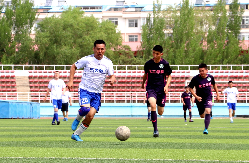 6月3日上午,学校教职工足球队和第二届校园足球联赛冠军队—化学与化学工程学院代表队在西区体育场举行了一场足球友谊赛。