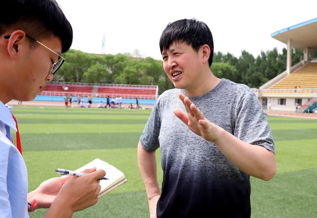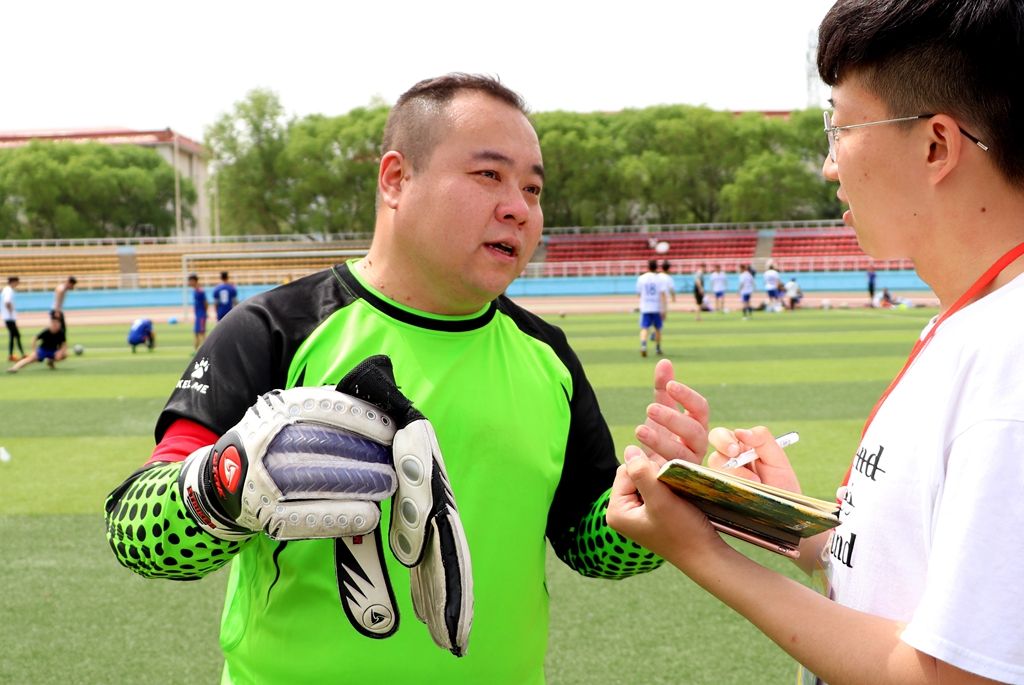 记者还采访到了保卫处副处长杜海权老师,他也作为学校教职工的代表参加了本场比赛。“我们教工队已经有几年没踢过比赛了,今年又被组建起来,感觉很好。”杜老师说,“本场足球赛从大方面来说可以增进友谊,从小方面来说可以运动健身,而且这次足球赛还有一个目的,就是为了给即将毕业的大四学生送别,希望他们在以后的工作和生活中能拿出在赛场上的精神去体验生活,祝愿他们未来能够取得成功。”