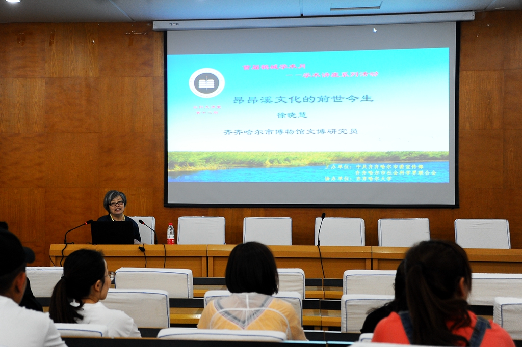 6月20日下午,齐齐哈尔市博物馆文博研究员徐晓慧来到我校,在西区主楼七楼学术报告厅作了一场专题讲座。我校科研处处长荆涛、副处长于佳宾,文学与历史文化学院、美术与艺术设计学院以及音乐与舞蹈学院相关专业硕士研究生和本科生代表参加了本场报告会。报告会由荆涛主持。