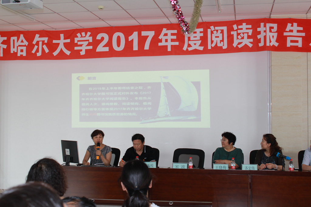 为了体现我校师生利用图书馆资源的情况,从不同的角度解读了我校师生的阅读倾向和阅读习惯,宋波用详实的数据讲解了2017年度齐齐哈尔大学阅读报告。报告中分别对纸质资源和数据库资源的使用情况进行了解读,充分分析了我校本科和研究生阅读现状。图书馆近两年用数据的方式发布了全校的阅读报告,这既是对图书馆一年工作的总结,也是对我校读书现状的数据支持。