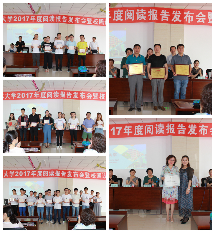 齐宏伟宣读了2017年度齐齐哈尔大学阅读活动中表现优异的学院、学生名单,并与参会领导一起为获奖单位、获奖者颁奖。