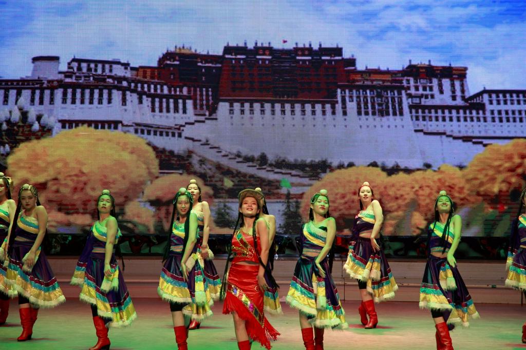 舞蹈系151班、161班的同学们带来了精彩的藏族舞蹈《情满天路 扎西德勒》,同学们用欢快的舞步展现了藏族同胞在充满神秘气息的青藏高原上的生活状态,为五湖四海的同胞送上了吉祥与祝福,同时也为音乐会画上了圆满的句号。