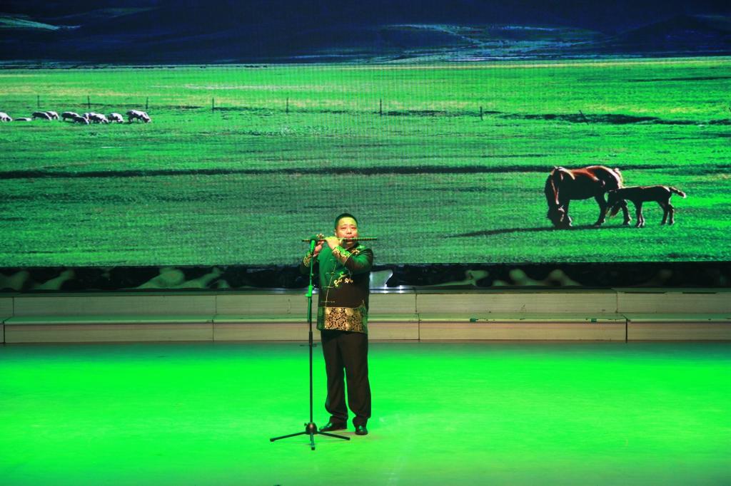 音乐与舞蹈学院李智老师为新生们带来了笛子独奏《牧民新歌》。以浓郁清新的民族民间音乐风格,亲切感人的旋律,活泼跳动的节奏展现出内蒙古大草原的风光和牧场上一派生机勃勃的喜人景象,表现了新时期牧民的精神风貌。