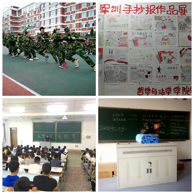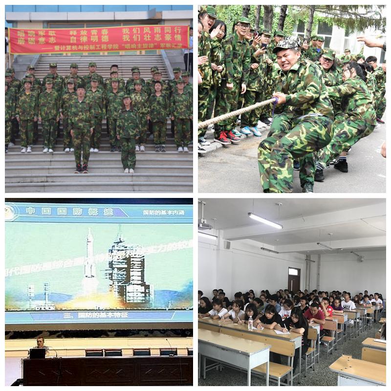 为了在新生心中深植爱党爱国的坚定信念,营造积极向上的军训氛围,9月6日晚18:00计算机与控制工程学院在西区篮球场举办了“唱响军歌,释放青春,我们风雨同行;磨砺意志,自律明德,我们壮志豪情”军歌汇演。汇演不仅丰富了新生的军训生活,增强了团队凝聚力,更激发了大家的爱国热情;为了丰富新生军训期间的校园文化生活,增进各班学生之间的友谊,培养学生们的团队协作能力,9月5日教育与传媒学院在东区轮滑场举办新生拔河比赛。通过本次拔河比赛,加强了班级内部同学们的团结合作,培养了学生的集体荣誉感和积极向上的进取精神;为了普及军事知识,进一步提升新生的国防知识水平,生命科学与农林学院邀请武装部(保卫处)范忠臣老师在中区文化宫为2018级新生上了一堂生动的军事理论课,此次军训理论课不仅使新生们增强了国防观念、国家安全意识,强化了爱国主义精神,同时也增加了同学们的民族自豪感和当代大学生的历史使命感;通信与电子工程学院开展了书写军训感言活动,参训学生在经历了严格的军事科目训练后纷纷在感言中表达了对未来大学生活的向往及对祖国军人的由衷敬佩之情。