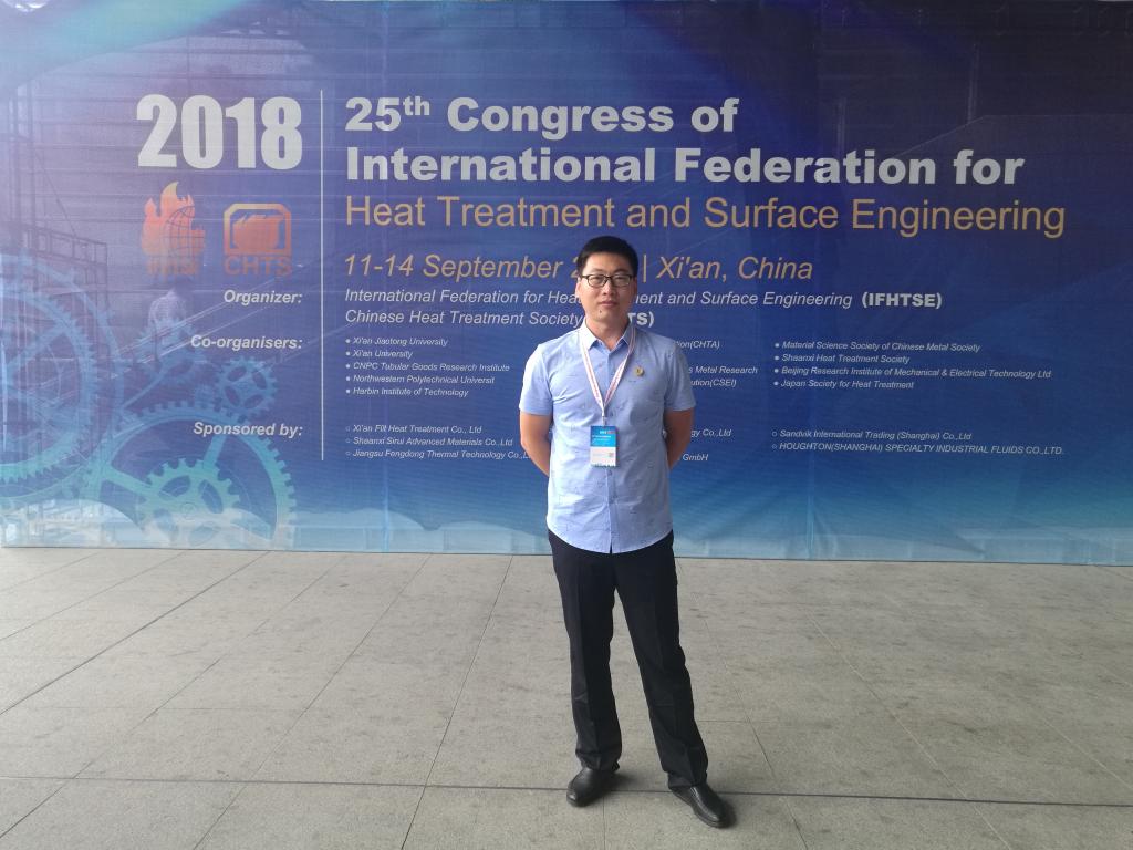 9月11-14日,材料科学与工程学院材料化学专业教师党支部书记、博士、副教授,由园老师参加了第25届国际热处理及表面工程大会。此次大会是国际上此领域级别最高、规模最大、综合性最强的学术大会,也是应用性技术交流最集中的展示大会,会议有来自国内外的近1300名专家学者和行业代表注册参加,其中境外代表约150人,来自24个国家和地区。继北京、上海之后,中国第三次于2018年9月11-14日在西安曲江国际会议中心召开。出席本次会议的有陕西省委常委、西安市市委书记王永康、哈尔滨工业大学校长中国热处理学会理事长周玉院士,以及国际热处理与表面工程联合会主席美国司各特.麦肯齐博士等。