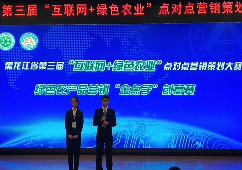 10月9日,由黑龙江省教育厅主办的第三届“互联网+绿色农业”点对点营销策划大赛决赛在东北农业大学落下帷幕。我校3个参赛项目团队榜上有名, 其中《库木勒商城营销策划方案》、《互联网+“稻习粮长”大米系类包装设计》2个项目荣获二等奖;《鲁昱品牌系列包装设计》荣获三等奖;我校荣获优秀组织奖。