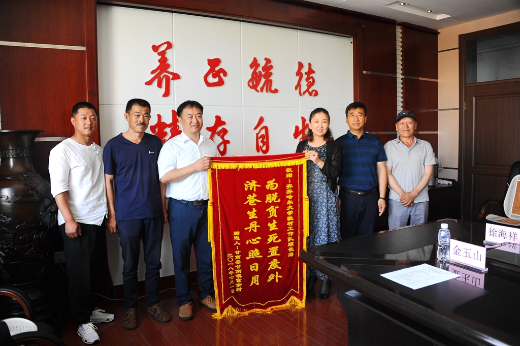 “为老百姓办实在事,是个实在人,顾长海这样的驻村工作队员俺们村民们举双手欢迎!”2018年7月,富余村两委班子成员及驻村扶贫工作队员一行来到学校,赠送了“为脱贫生死置度外,济苍生丹心照日月”锦旗,表达了对齐齐哈尔大学精准扶贫工作和顾长海同志的感激之情。