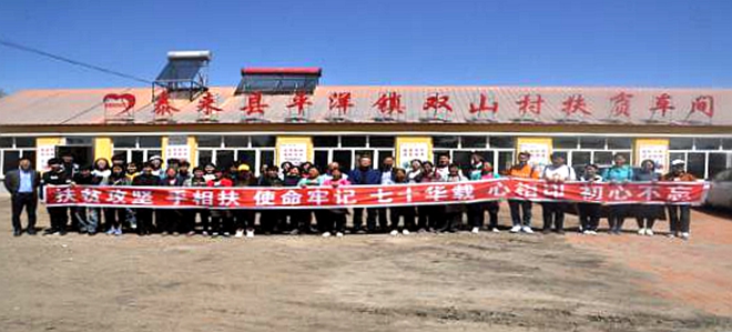 为深入贯彻落实习近平总书记在学校思想政治理论课教师座谈会上的重要讲话中提出的“把思政小课堂同社会大课堂结合起来”的要求。5月29日,我校马克思主义学院“纲要”与“概论”两个教研室的教师带领来自省外13个地市12个专业的20多名学生来到泰来县平洋镇双山村扶贫车间参观考察。平洋镇领导全程陪同讲解。