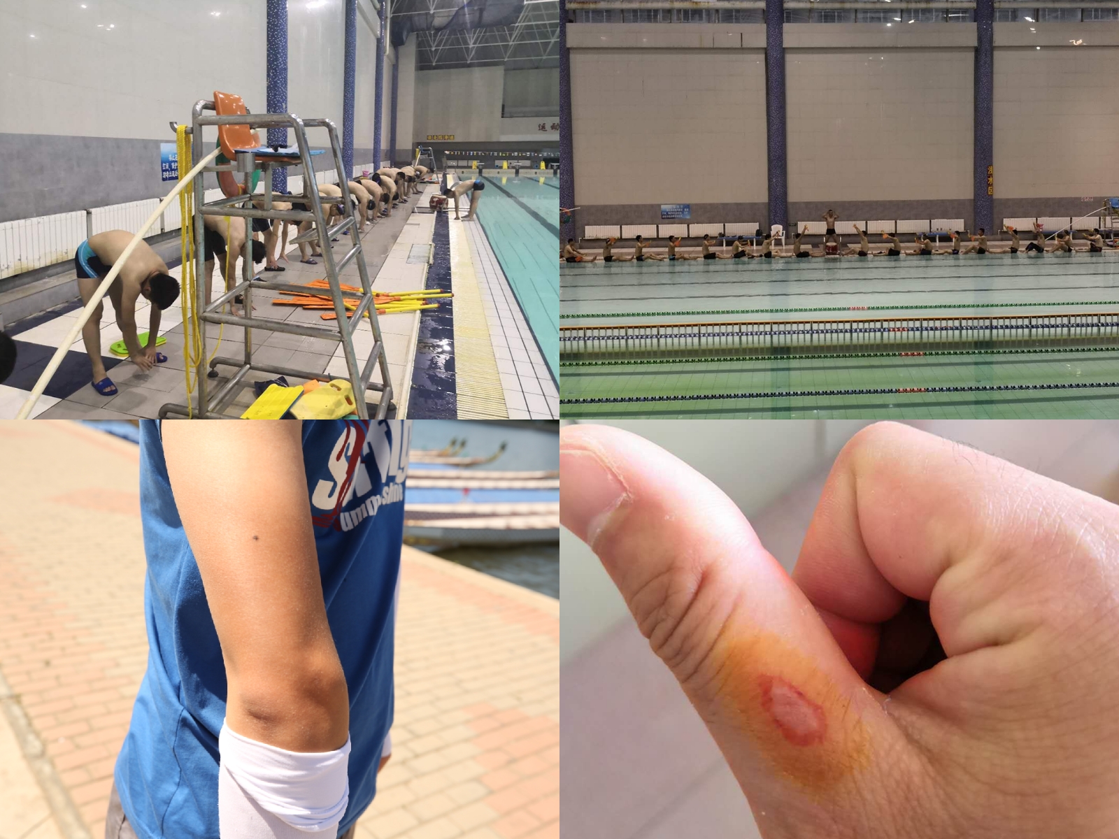 我校青年教师代表队是一支特殊的队伍,他们学历高、素质高、能力强,但是他们来自学校不同的单位、部门,年龄差距大、身体素质各不相同,日常承担着大量的工作,这为他们的赛前训练出了不少难题。为了保证在比赛中能够取得优异的成绩,龙舟队聘请了体育学院教师姚良才担任教练员,并制定了详细的训练计划,训练过程很艰苦,从旱地训练、到游泳馆练习,再到湖面实战,参加训练的青年教工克服了种种困难,历时11周、73天,进行了6万余次的船桨挥动。哪怕是手臂受伤,伤口感染发炎,感冒发烧,队员们从来没有人缺席过,啃着面包训练,换下湿衣服直接去上课也都成了常态,队伍的刻苦精神和团队意识感染了每个人,这为后来的优异成绩奠定了坚实的基础。