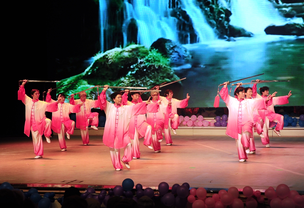 在开幕式上,我校离退休老同志表演了太极拳、太极剑、太极扇、全民健身操、舞蹈《大中国》等精彩的文艺节目,离退休工作处副处长杜金彪、田立玲分别带来了歌曲《最美的歌儿唱给妈妈》《今天是你的生日—中国》,赢得了广大老同志们的阵阵掌声,开幕式最后在与会领导和全体演职人员合唱的歌曲《我和我的祖国》中落下帷幕。