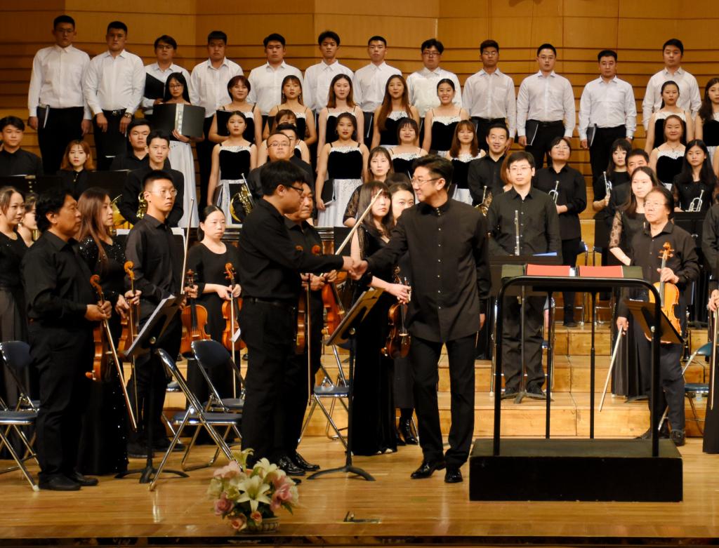 2019级新生入校恰逢新中国70华诞即将来临,为传承红色基因,弘扬爱国精神,学校以“不忘初心、牢记使命”主题教育为契机,在2019级新生音乐会节目选编上匠心独运,将爱国主义教育融入到激情四射的舞台表演中,使2019级新生在欣赏高雅艺术的同时接受了爱国主义教育。迎新系列交响音乐会的举办将激发六千多名大一新生的爱国热情,为喜迎新中国成立70周年营造浓郁的爱国氛围,真正达到了以文化人的目的。